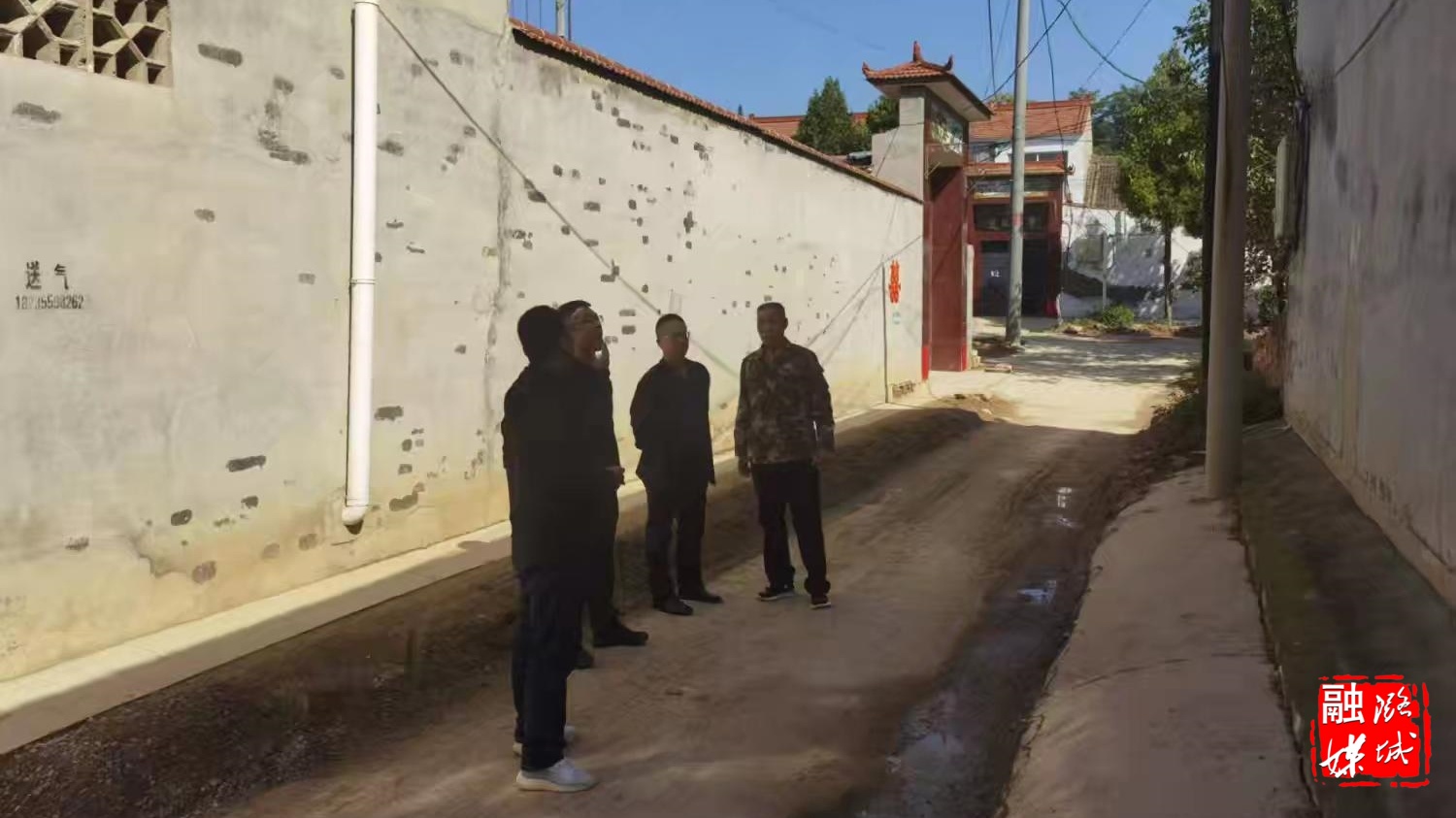 ▲成家川街道相关负责人在西辿村就水网改造情况进行协调推进。