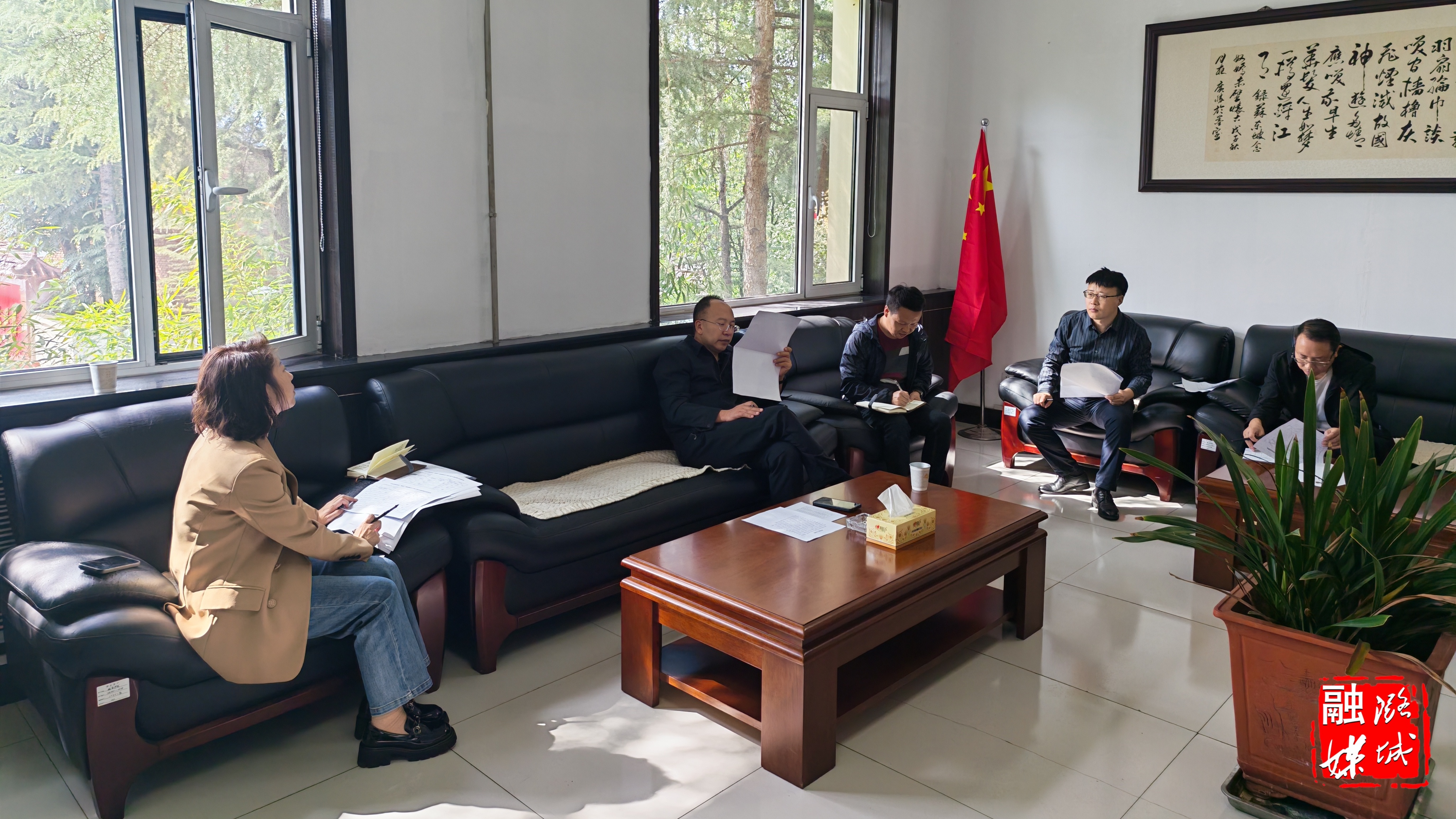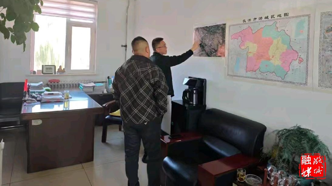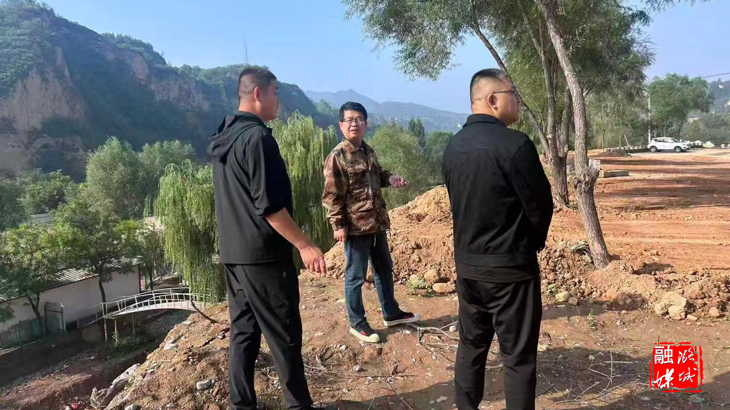 ▲微子镇负责人同项目单位沟通南桥沟项目施工事宜。