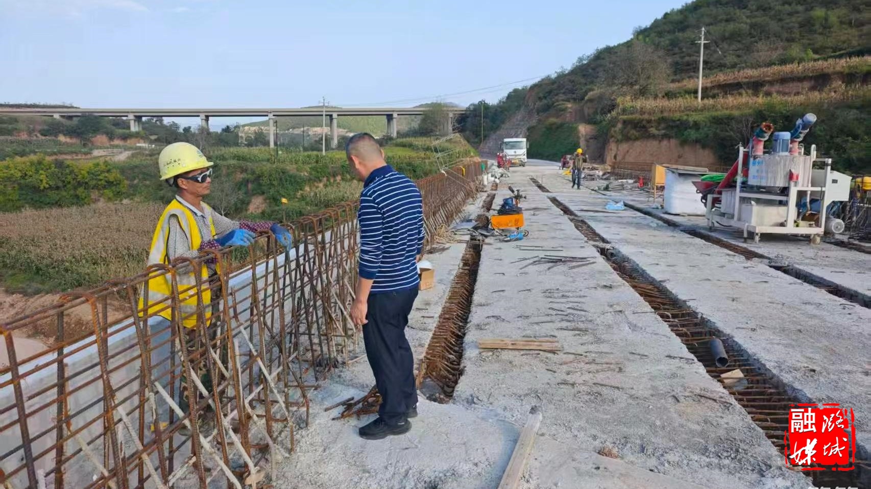 ★9月30日,区交通运输局负责人在店辛线施工现场,就“两节”期间施工安全、进度、质量进行督导检查。
