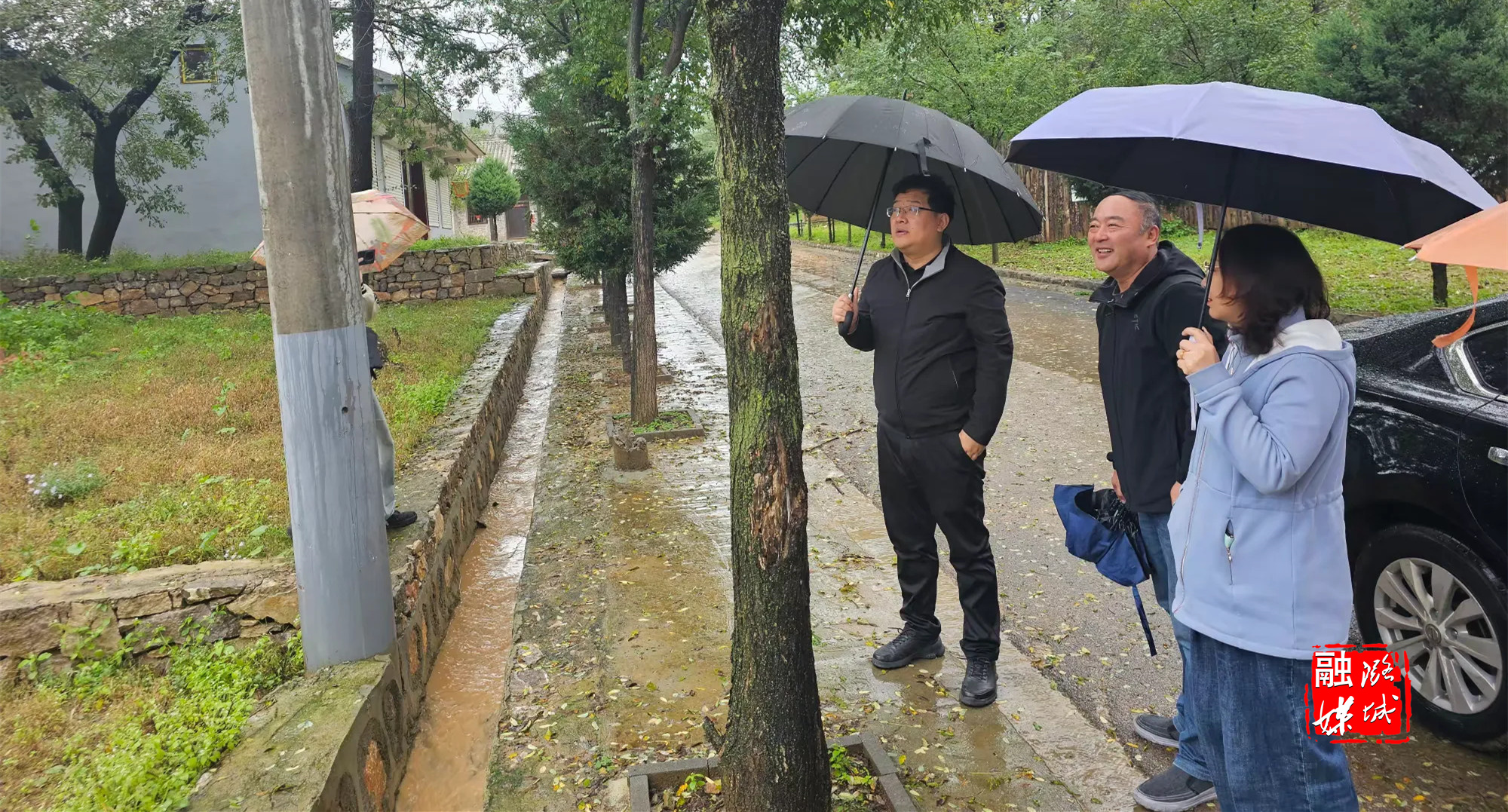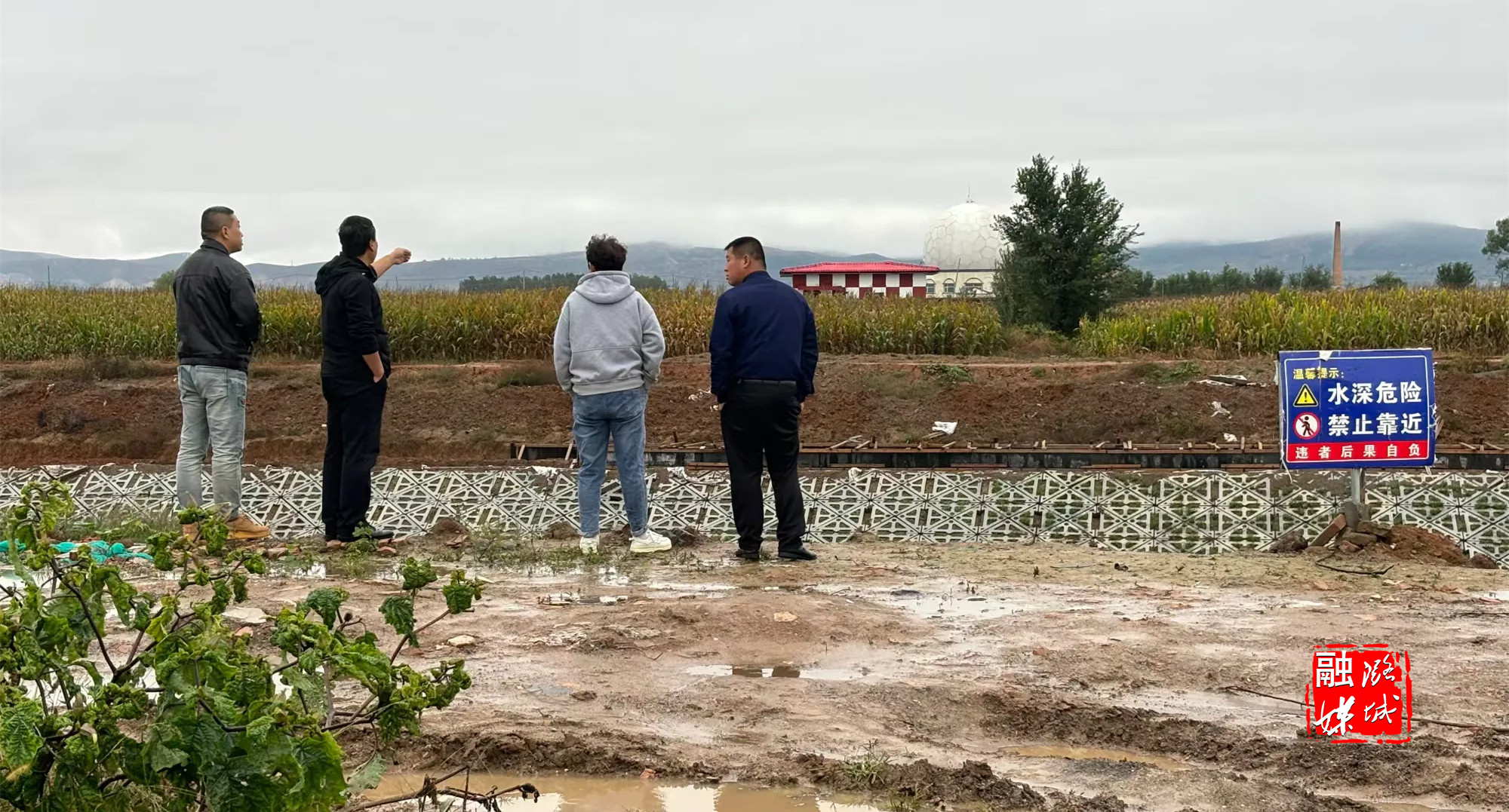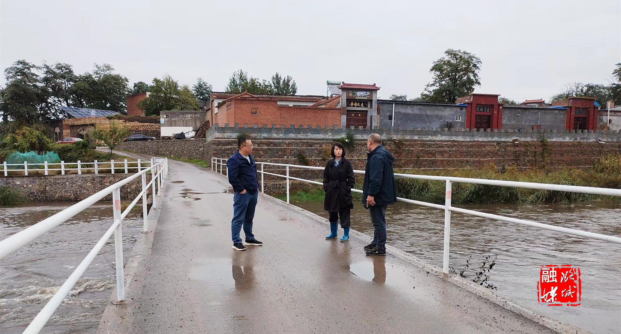 ▲史回镇相关负责人到曲里村开展河道巡查。