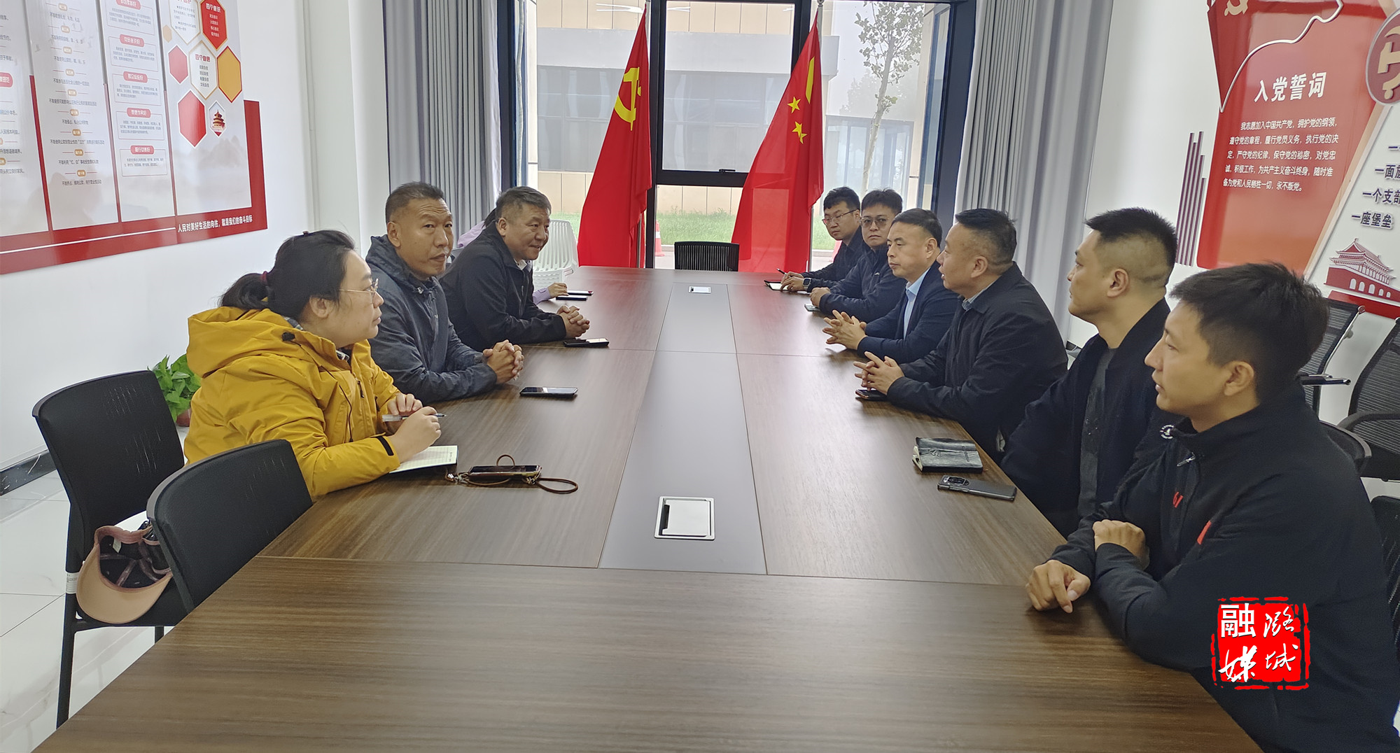 ▲翟店街道相关负责人与项目方协调项目建设工作。