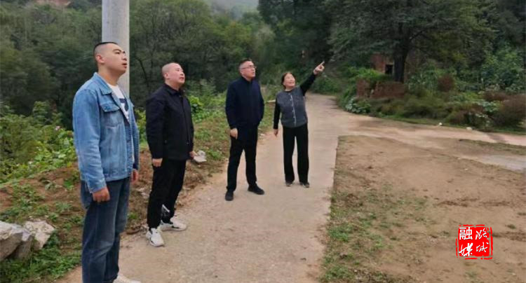 ▲辛安泉镇负责人到石梁村申家山小组实地查看地质灾害隐患点具体情况。