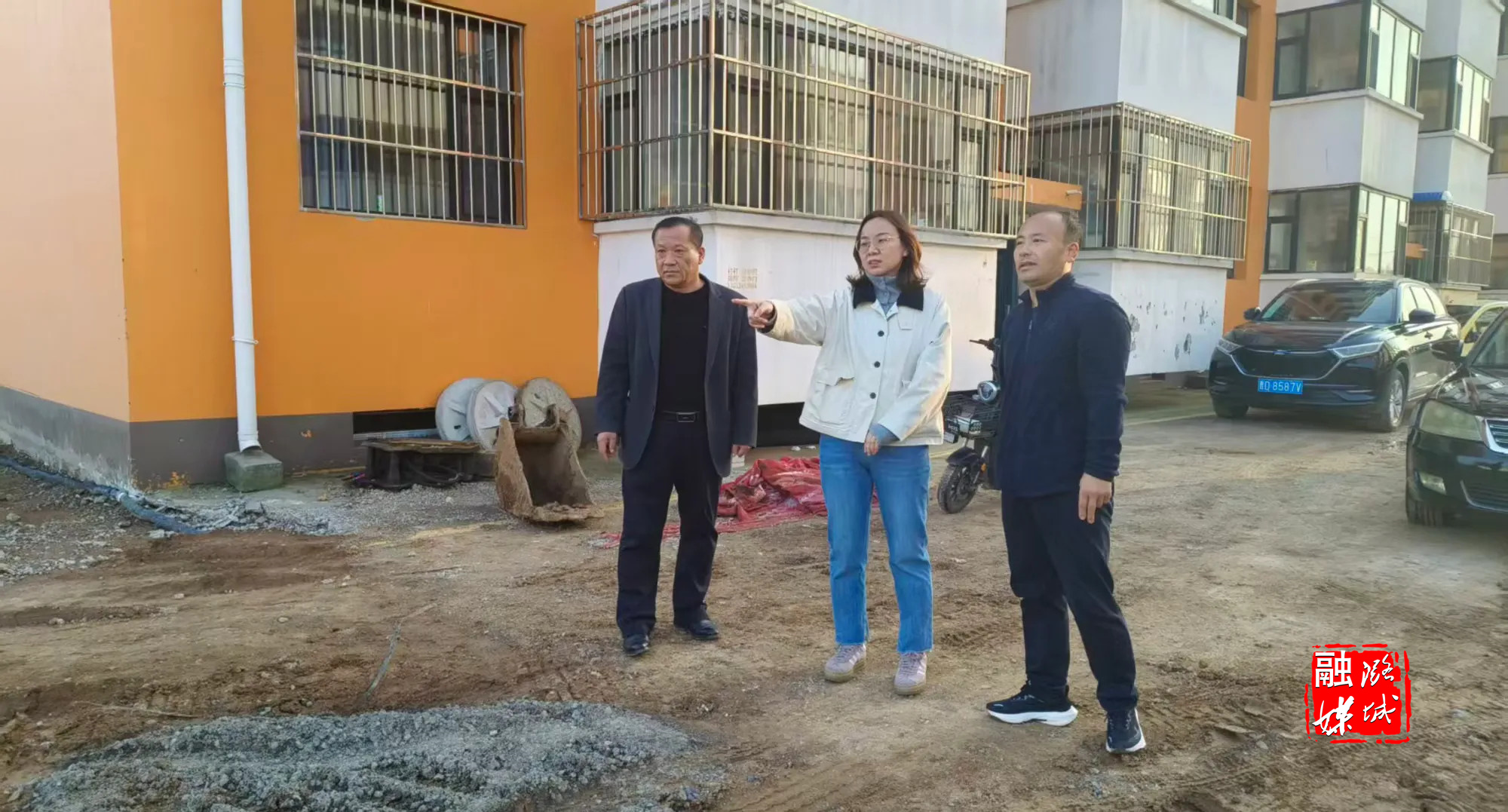 ★10月15日,翟店街道相关负责人到贾村推进御康院小区地面硬化和排水工作。