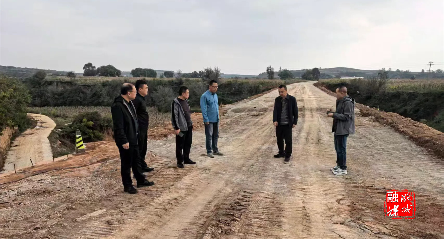 ▲区交通运输局负责人在店辛线、安曹线等施工现场督导检查汛期抢险施工质量、进度、安全。