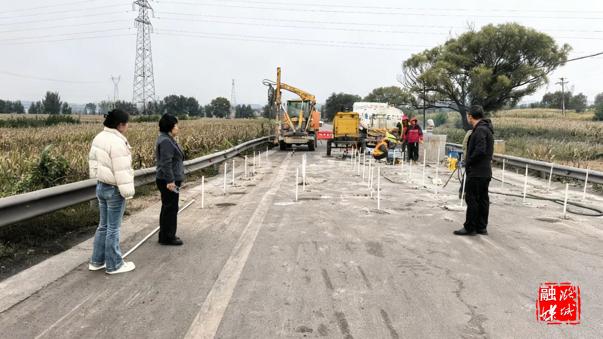 ★10月20日,店上镇工作人员就道路安全隐患进行排查。