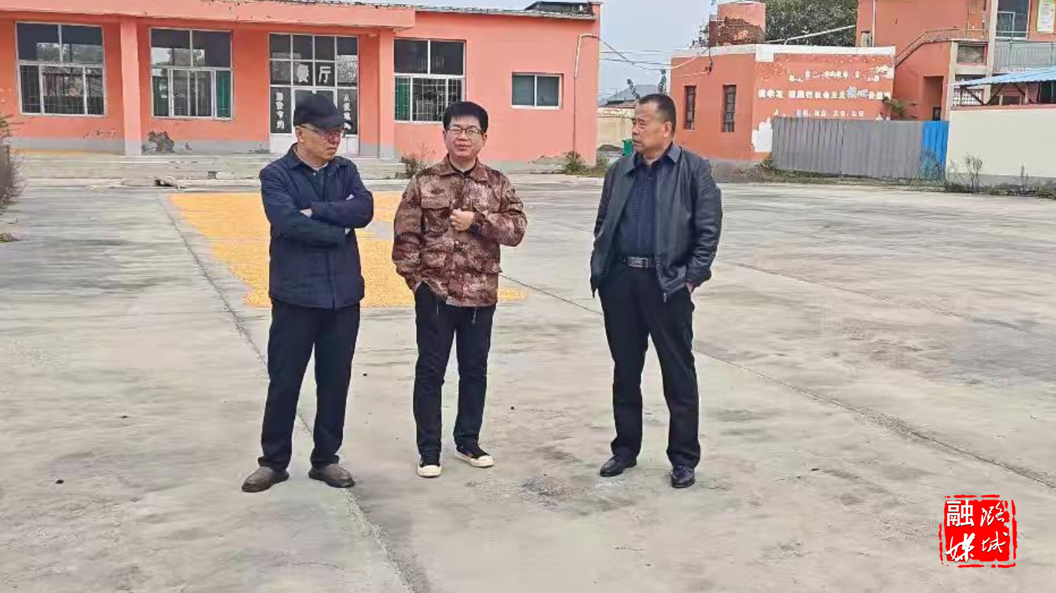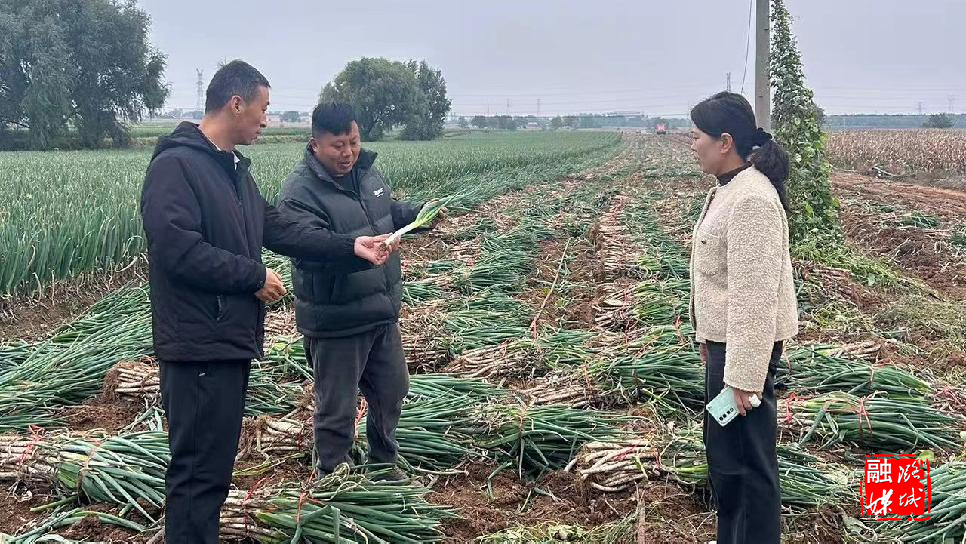 ▲店上镇相关负责人到东白兔村查看集体经济种植项目收成情况。