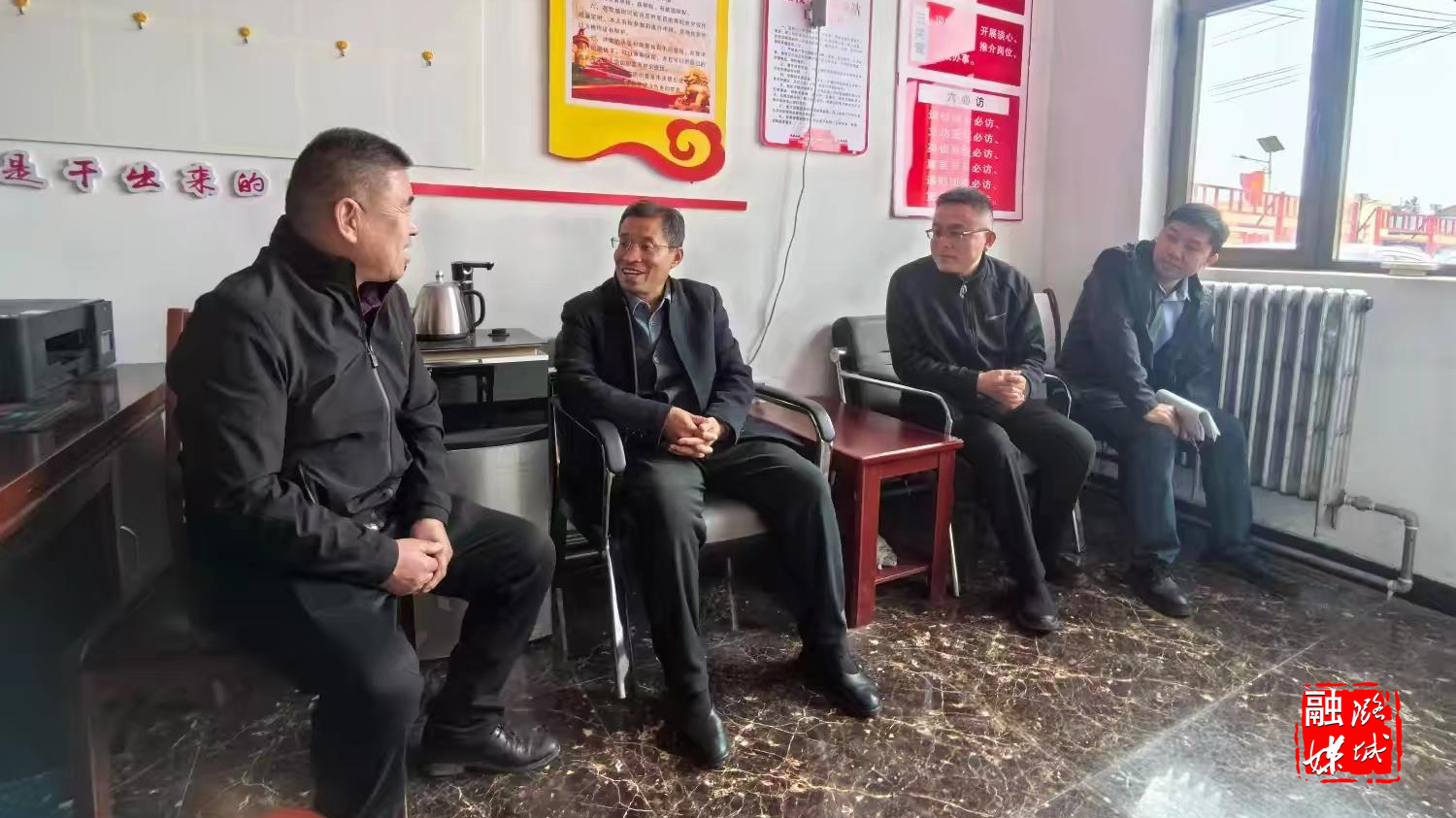 ▲辛安泉镇相关负责人同长治市城镇供水集团有限公司工作人员就供水保障管线及配套设施工程相关事宜进行沟通。