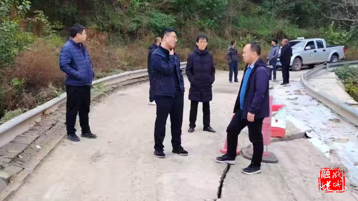 ★10月21日,成家川街道相关负责人在峪北村查看塌陷路段情况。