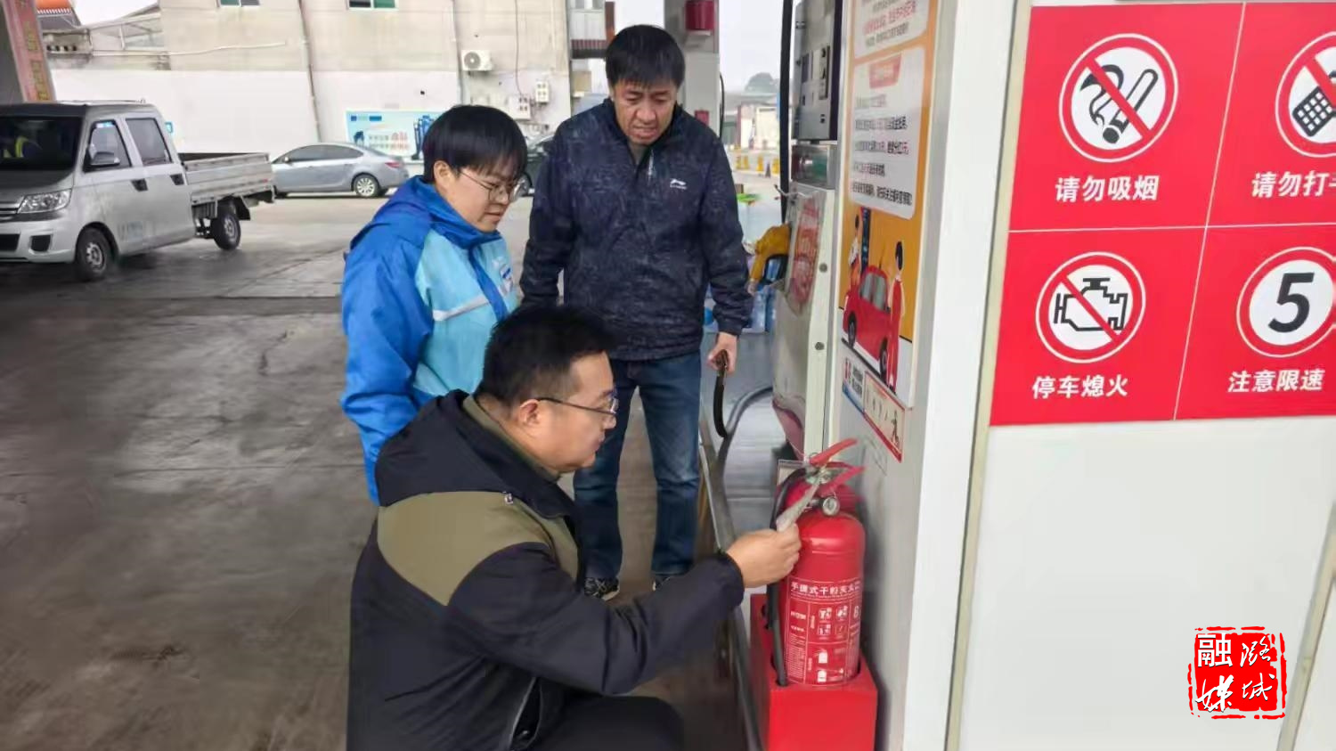 ★10月25日,微子镇工作人员在加油站排查消防安全隐患。