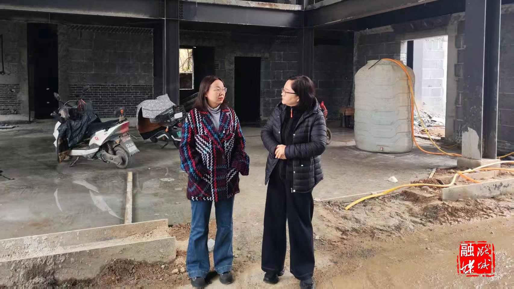 ▲店上镇相关负责人实地查看燃气改造工程进度。