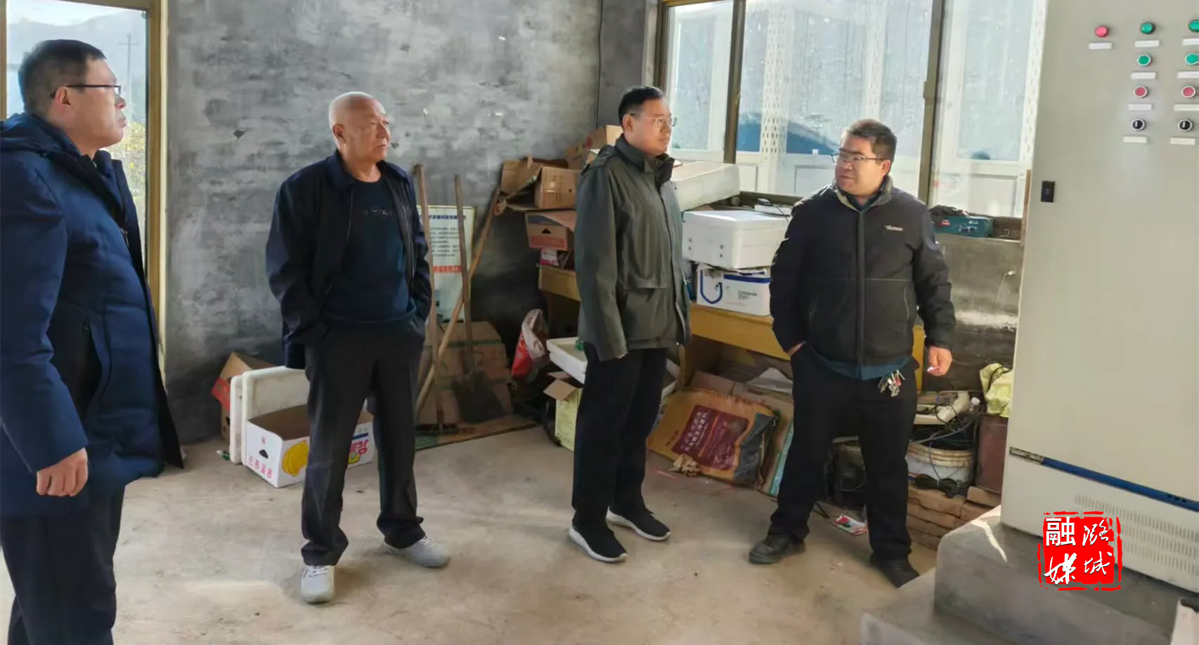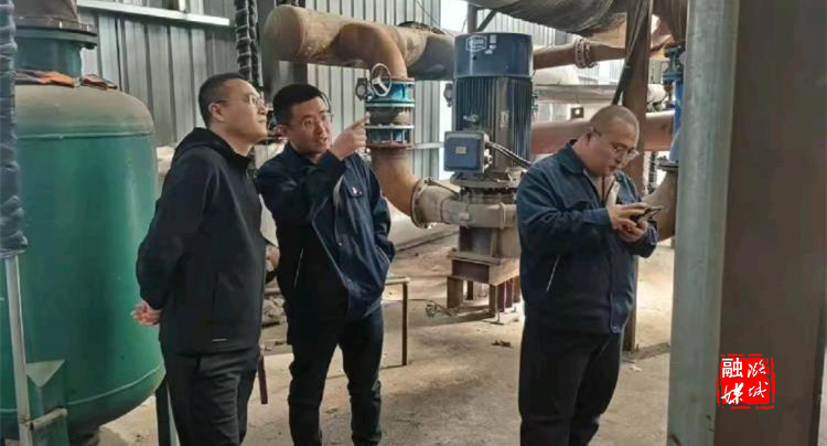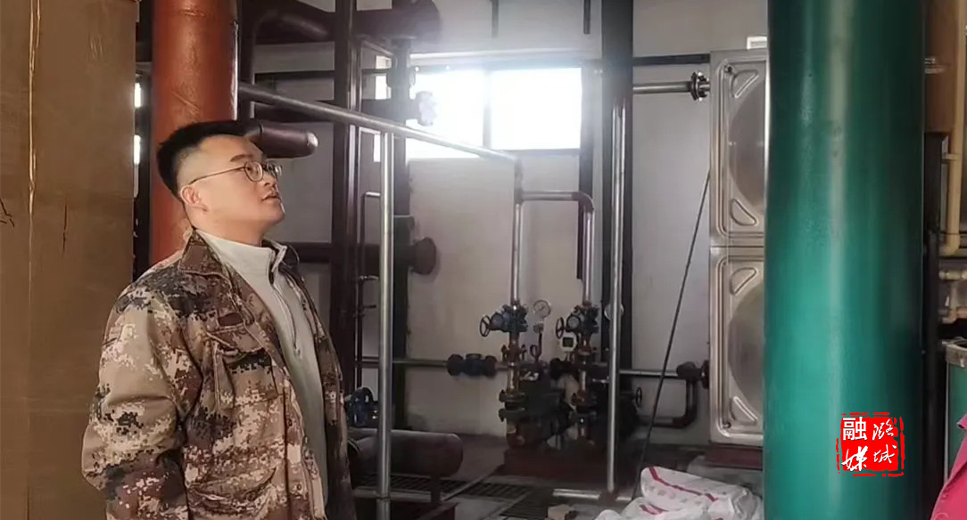 ▲微子镇相关负责人在微子村查看供暖设备运行情况。