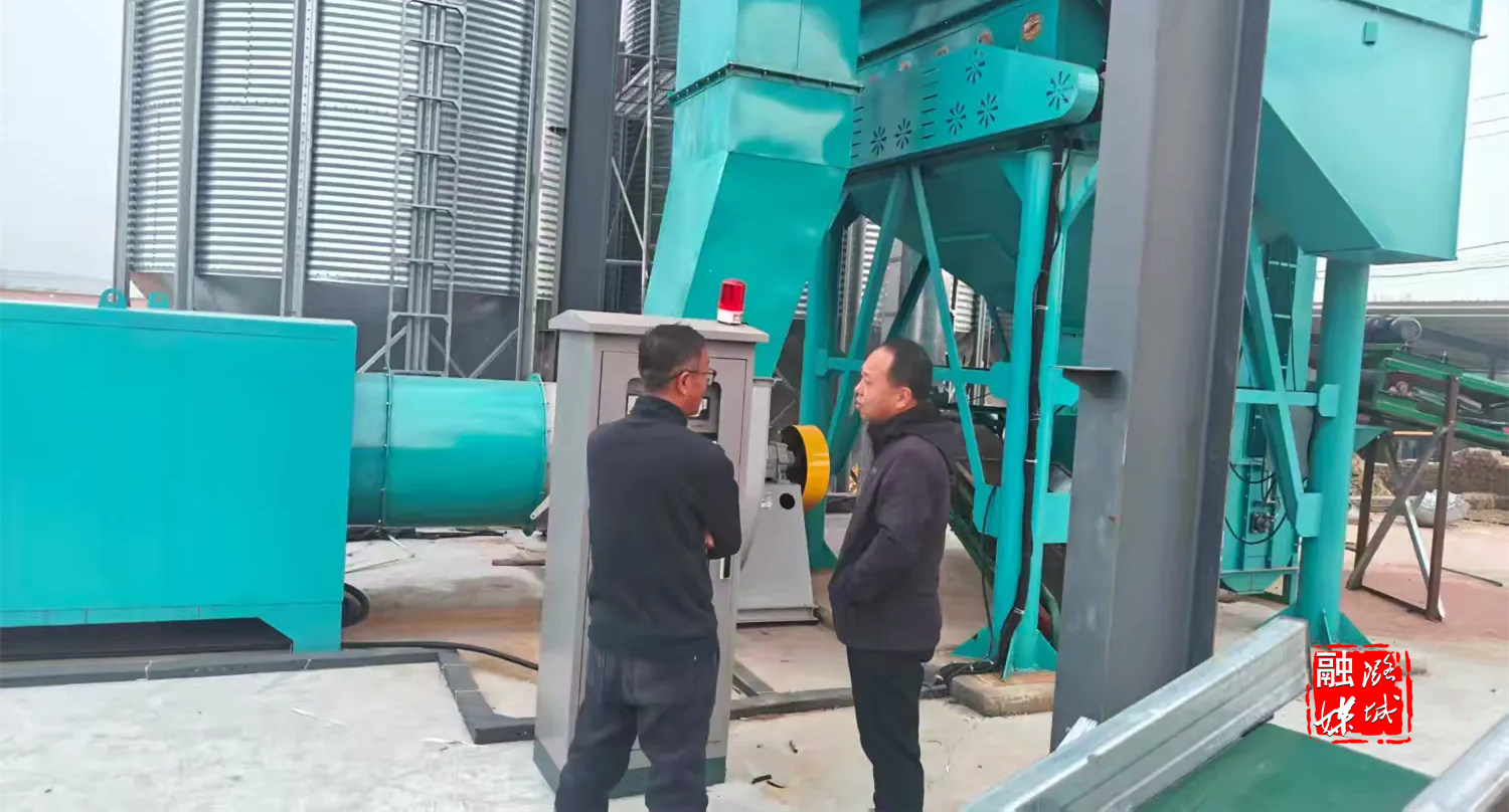 ▲成家川街道工作人员到东邑村融合农业产业园查看烘干设备运行情况。