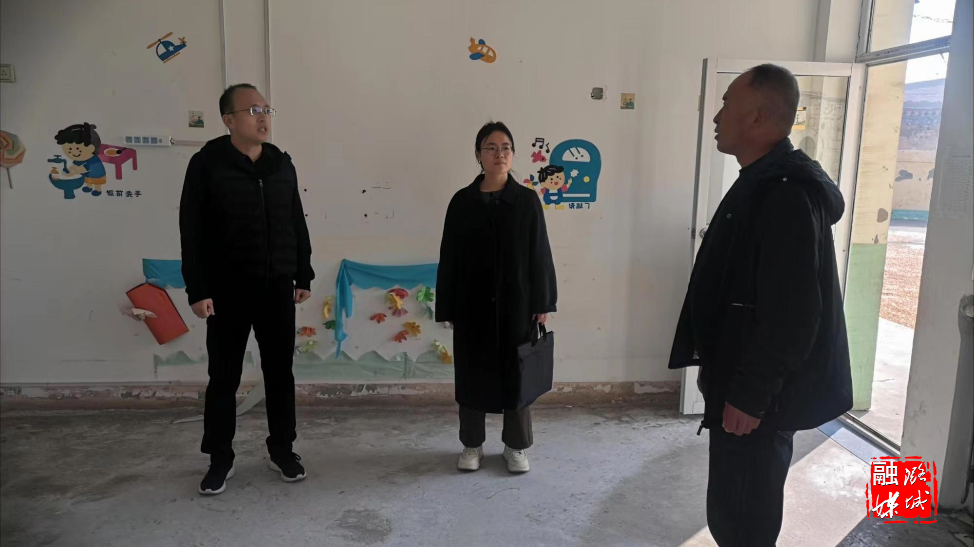 ▲潞华街道相关负责人到合室村实地查看日间照料中心建设运营情况。