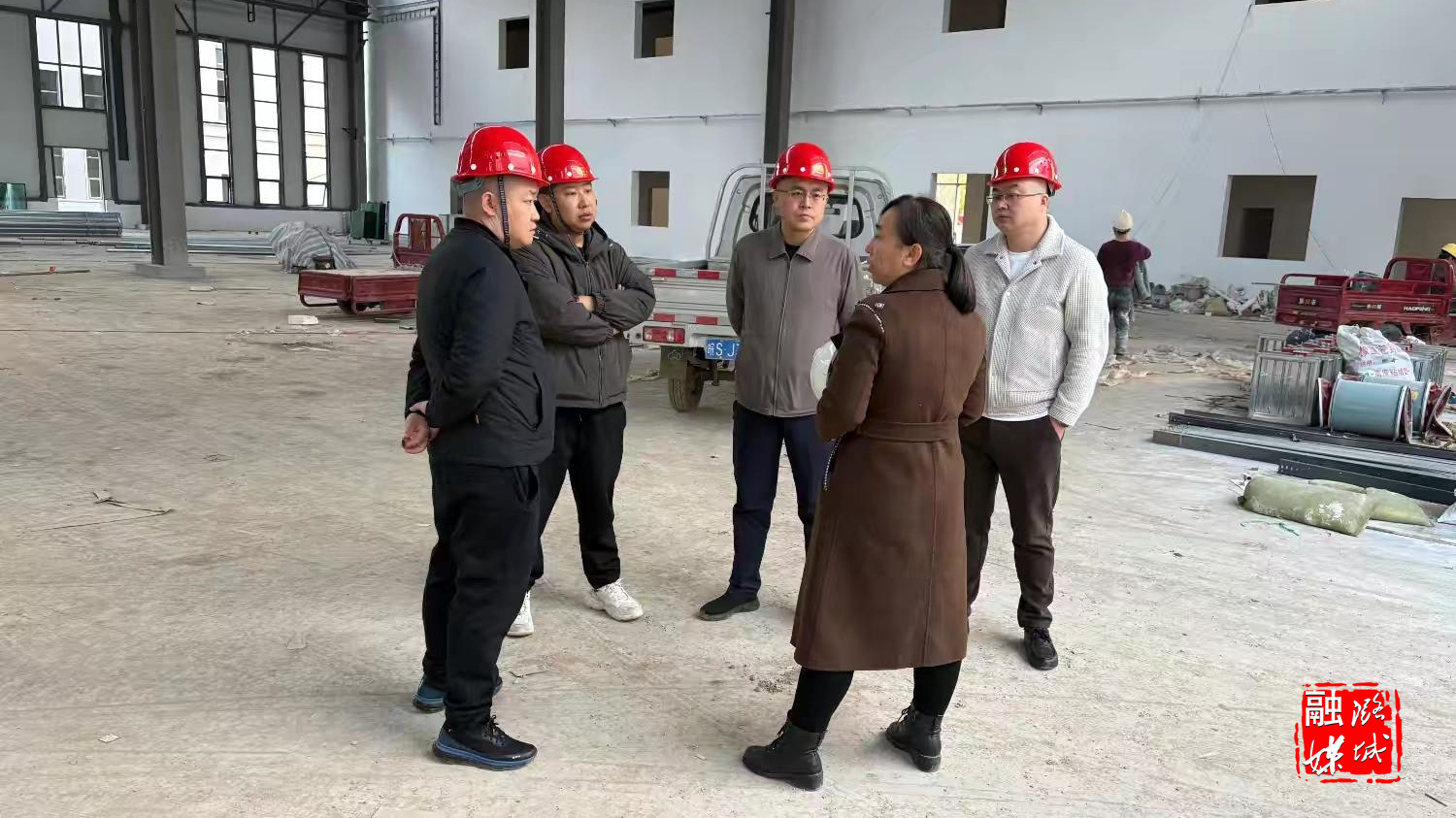 ▲微子镇负责人在数智互联产业园查看项目进场施工情况。
