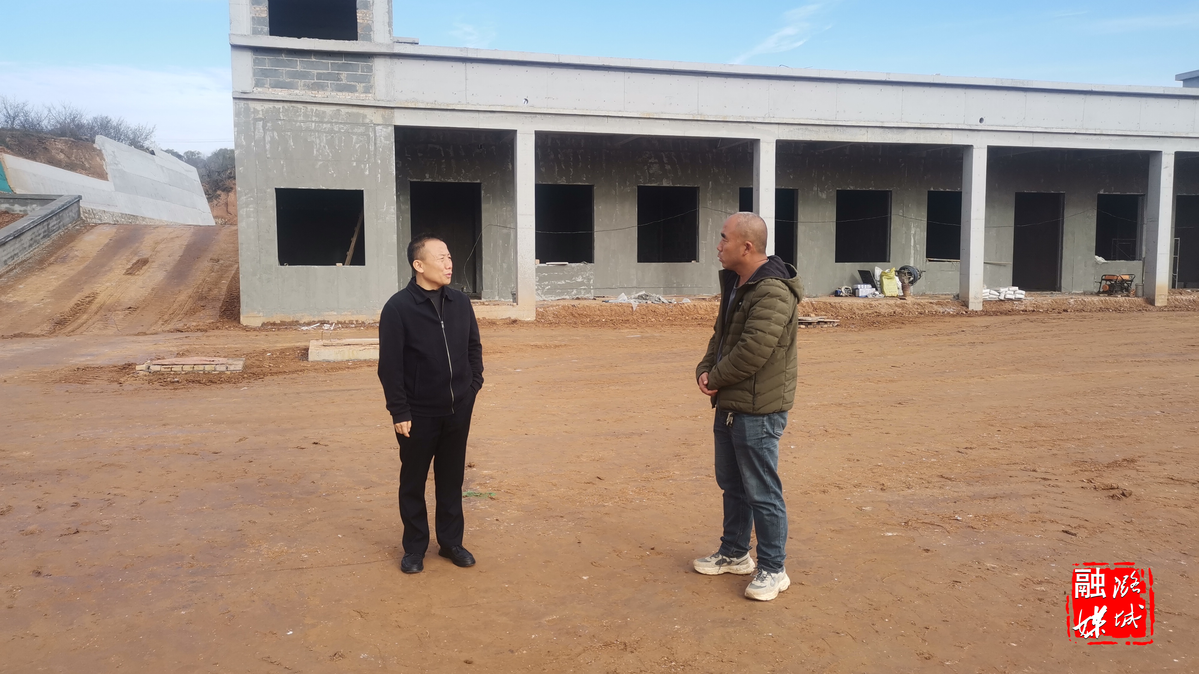 ▲黄牛蹄乡工作人员到施工现场查看项目进展情况。