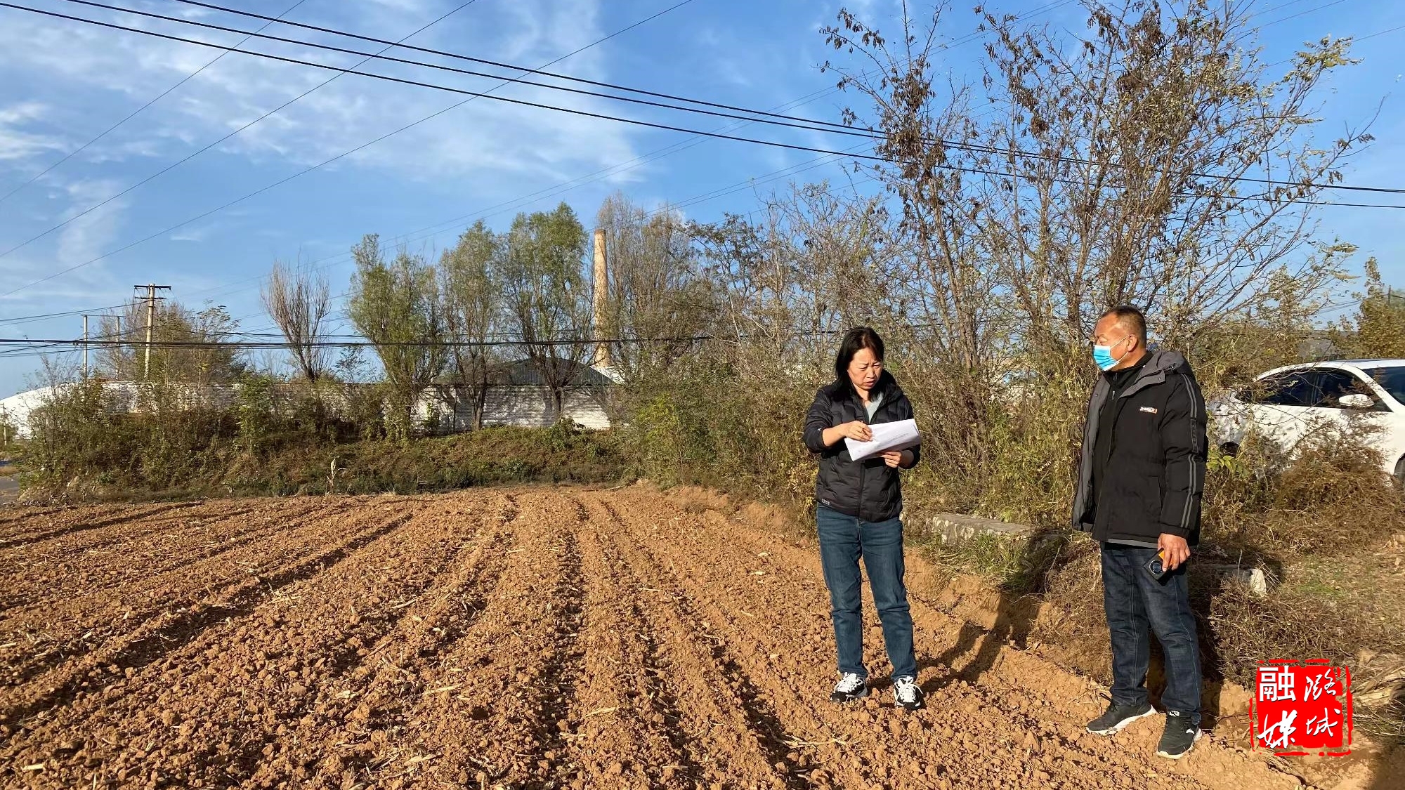 ★11月11日,史回镇工作人员到王里堡村验收冬小麦种植情况。