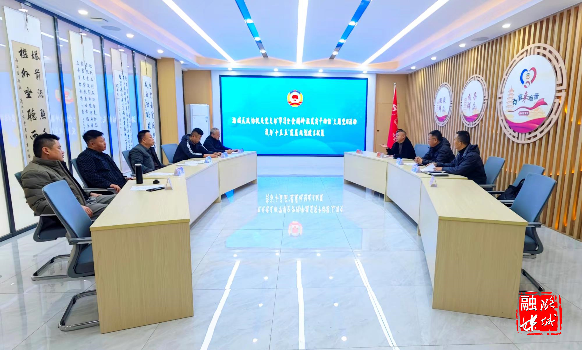 ▲潞华街道相关负责人与意向投资商对接项目建设事宜。