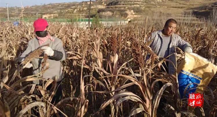▲微子镇贾街村组织人员开展高粱秋收工作。