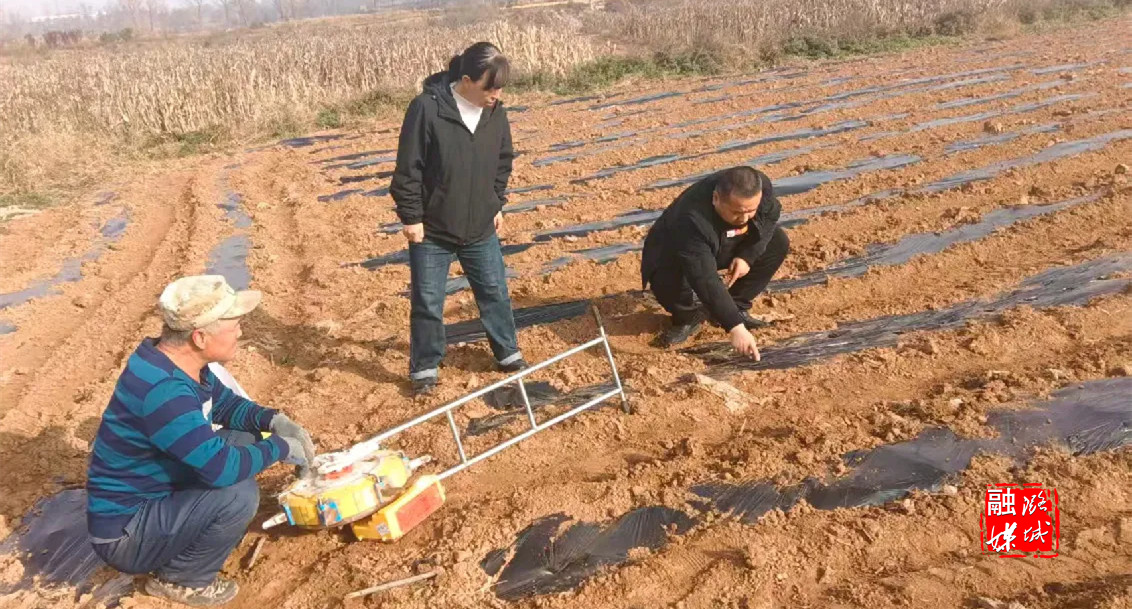 ▲辛安泉镇相关负责人在续村对集体土地种植的花生等农作物采收情况进行查看。
