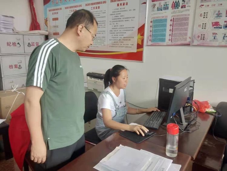 ▲5月30日,成家川街道负责人到东邑村查看一事一议项目进度和补充养老保险模板导录工作。