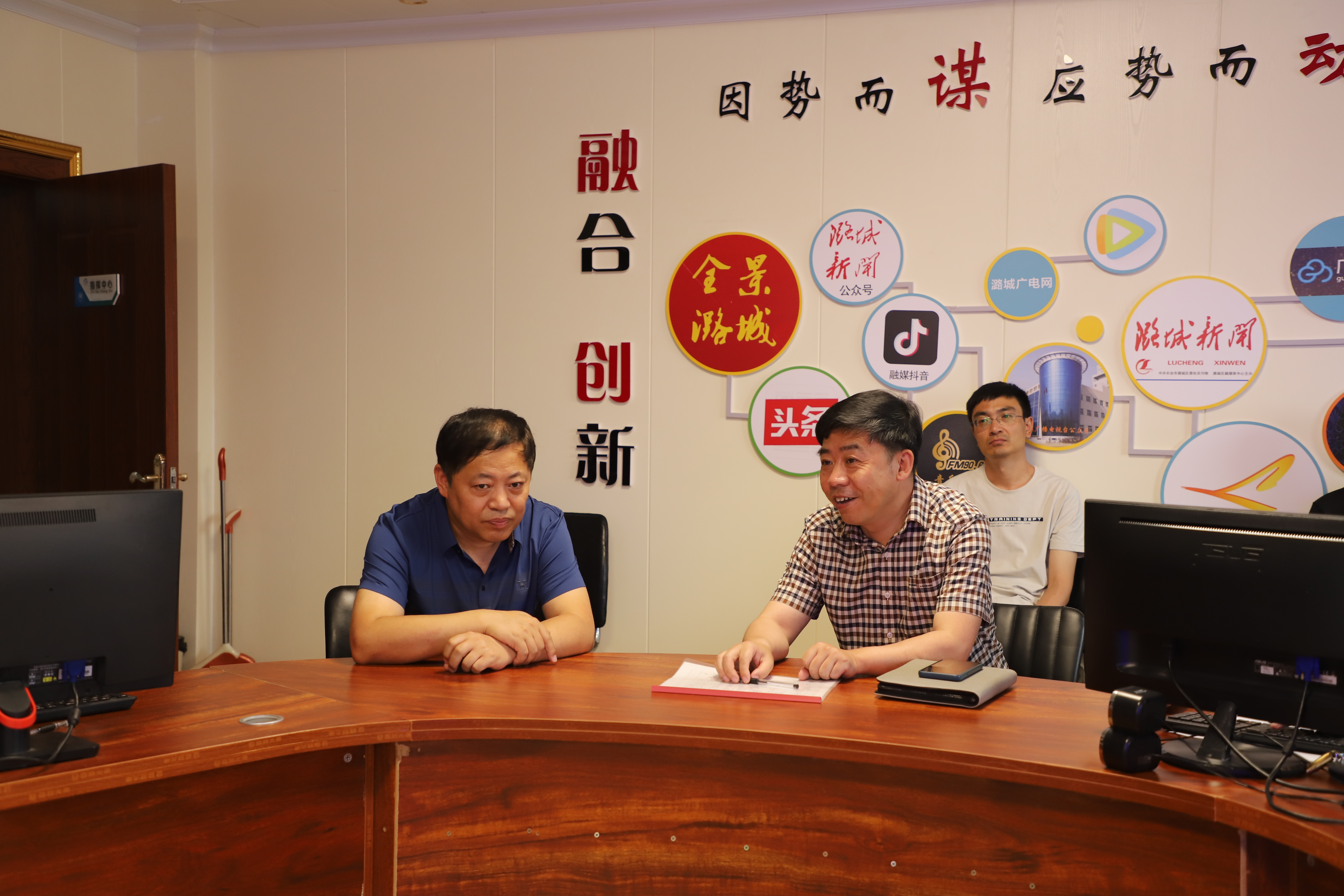 ▲5月31日下午,黑龙江省绥化市兰西县融媒体中心一行深入我区融媒体中心,交流和探讨媒体融合发展、工作机制创新等方面的新思路、新方法、新举措。