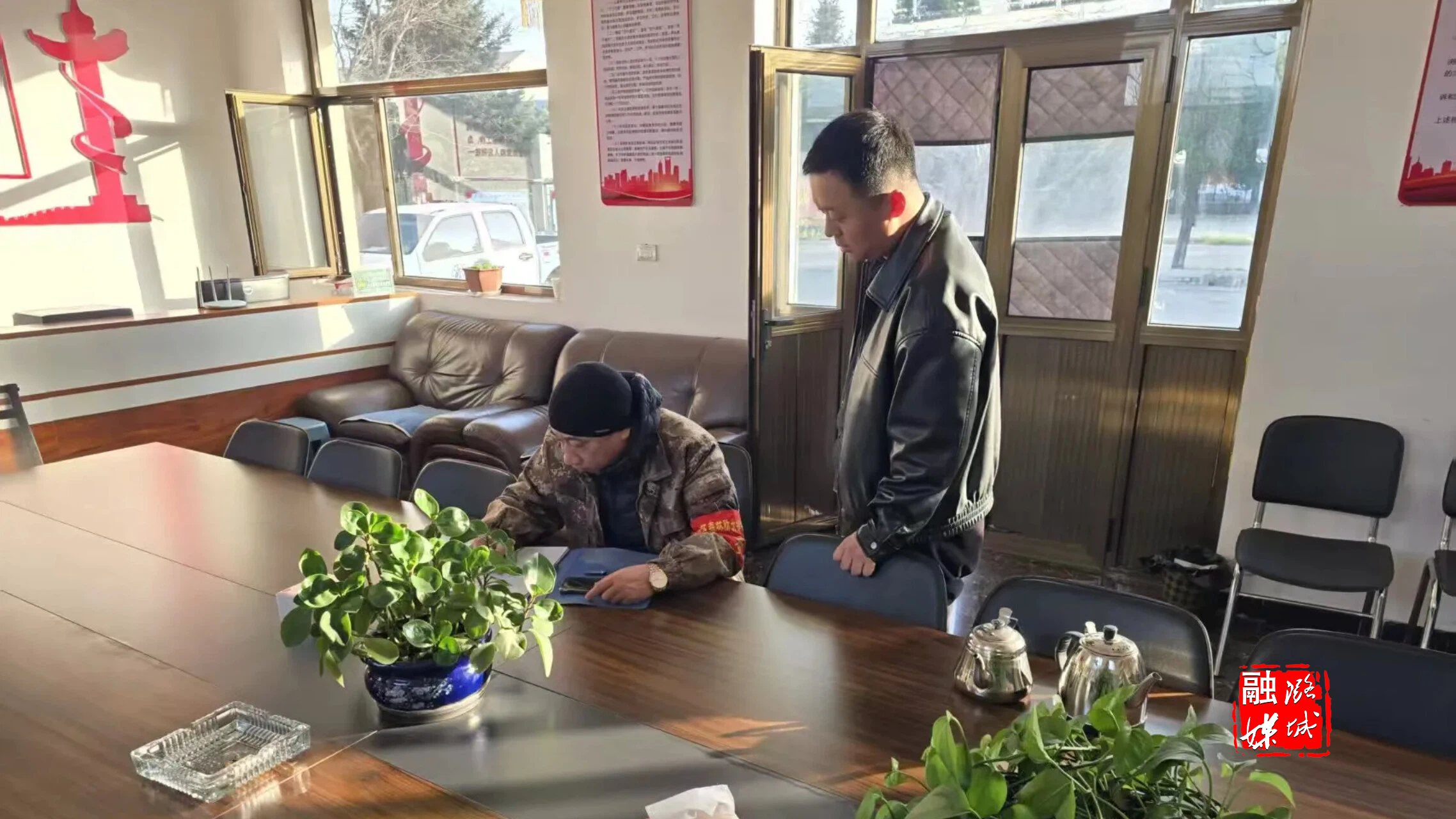 ▲成家川街道林业站工作人员在各村巡查森林防火工作。