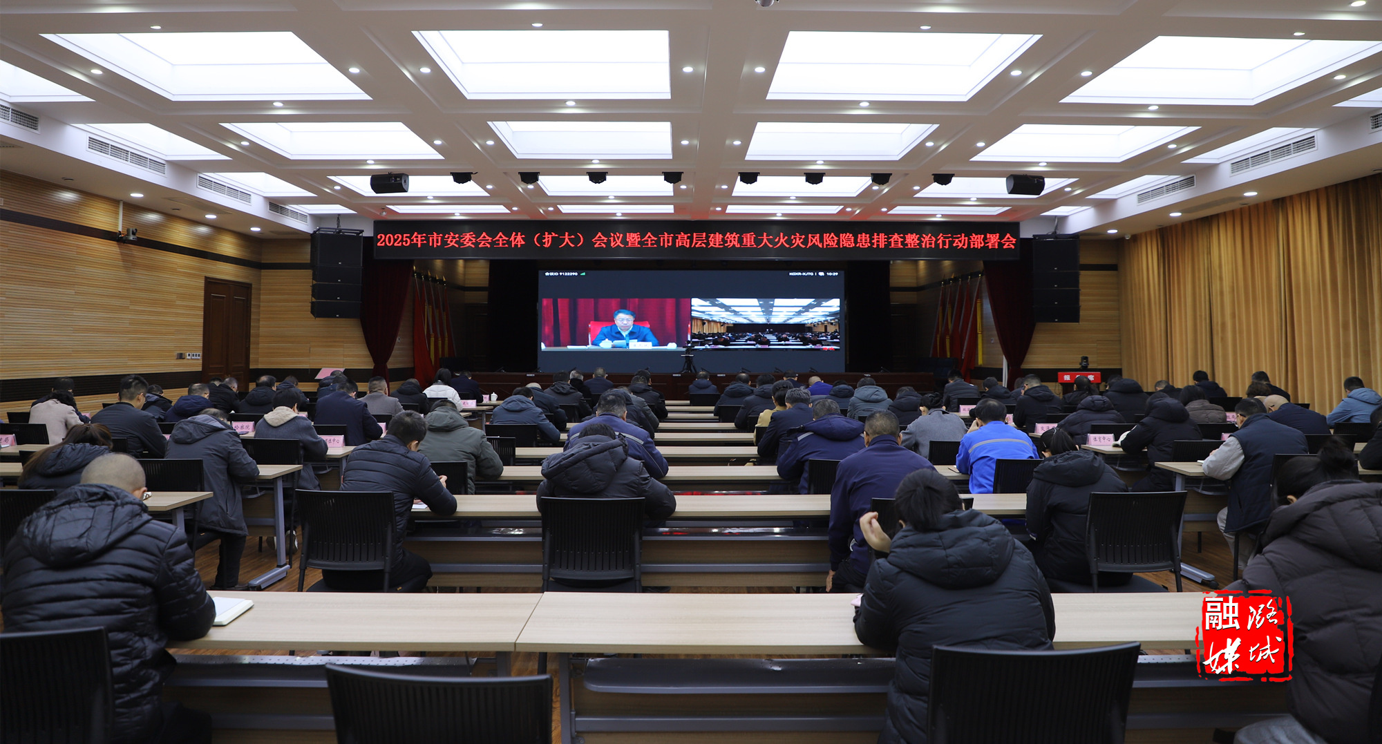 ★12月3日上午,市安委会全体(扩大)会议暨全市高层建筑重大火灾风险隐患排查整治行动部署会召开。副区长杜进才、刘喜乐、王振华、张永刚,各乡镇(街道)及区直各有关单位相关负责人在我区分会场收听收看会议实况。