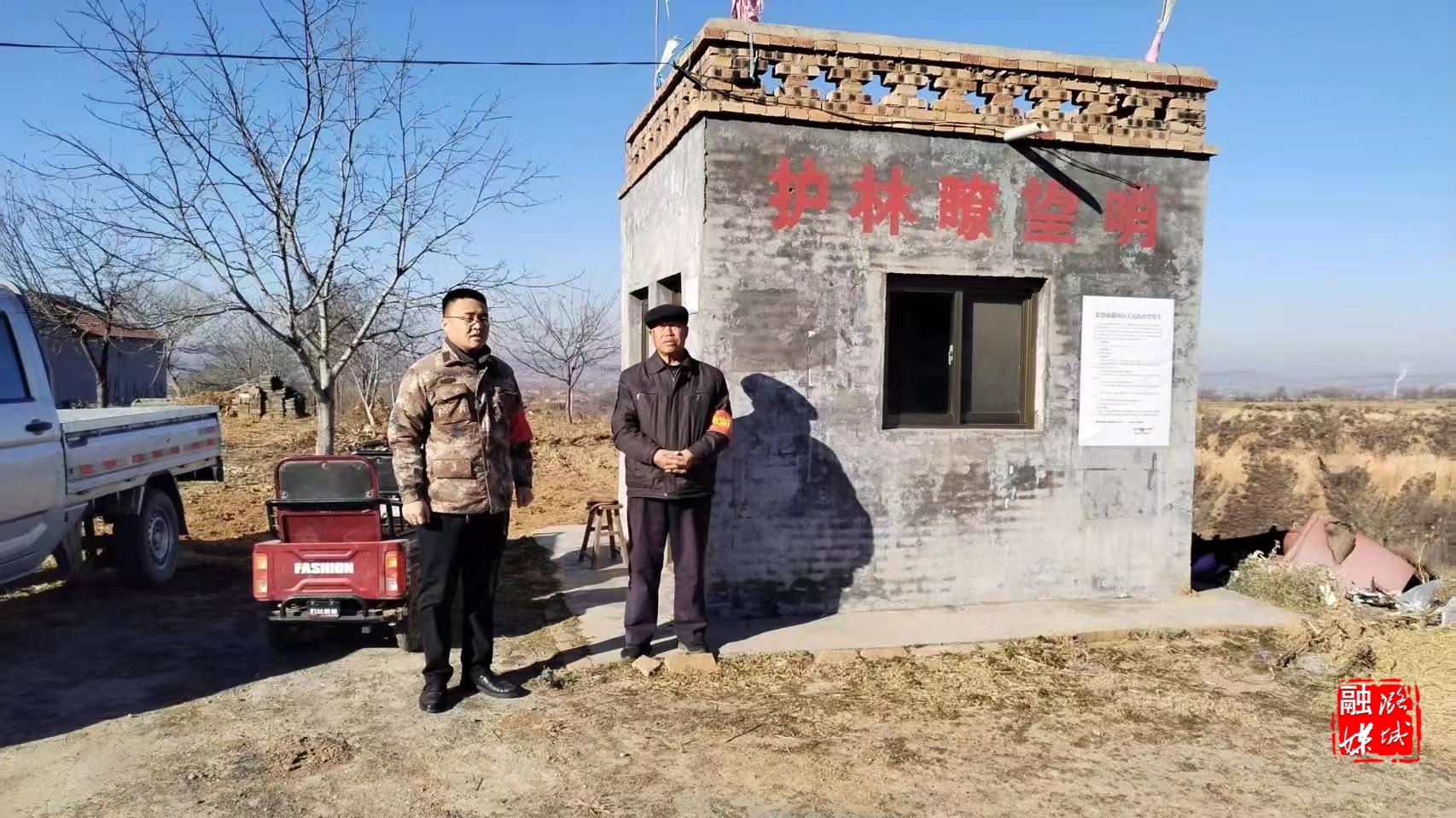 ▲辛安泉镇林业站工作人员到各村查看护林员值班值守情况。