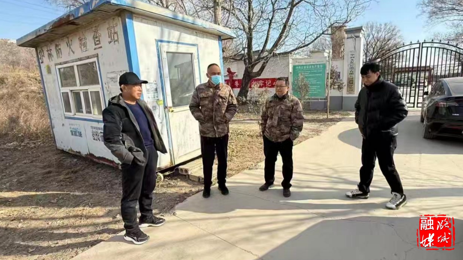 ▲翟店街道相关负责人到包联村推进基层党建和森林防火工作。