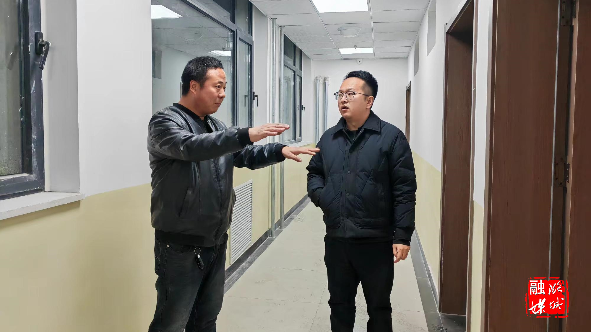▲店上镇相关负责人查看店上养老院建设情况。
