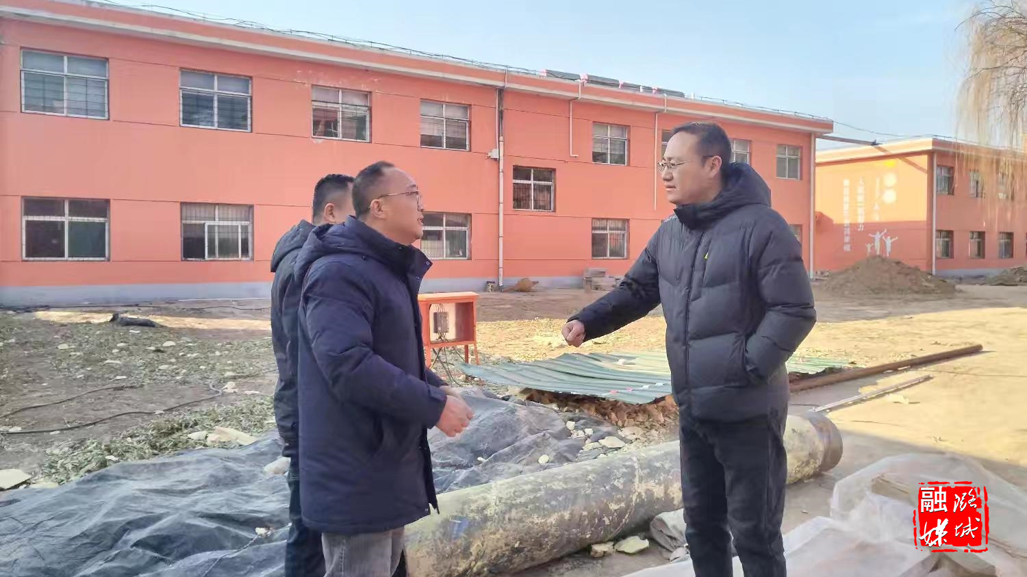 ▲微子镇相关负责人在主镇区查看集中供暖管网工程进度。
