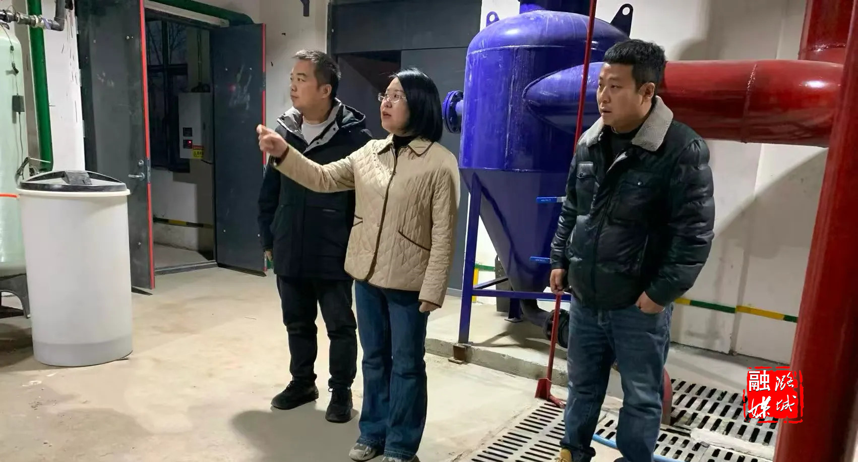 ▲店上镇负责人到温村实地查看供暖设备运行情况。