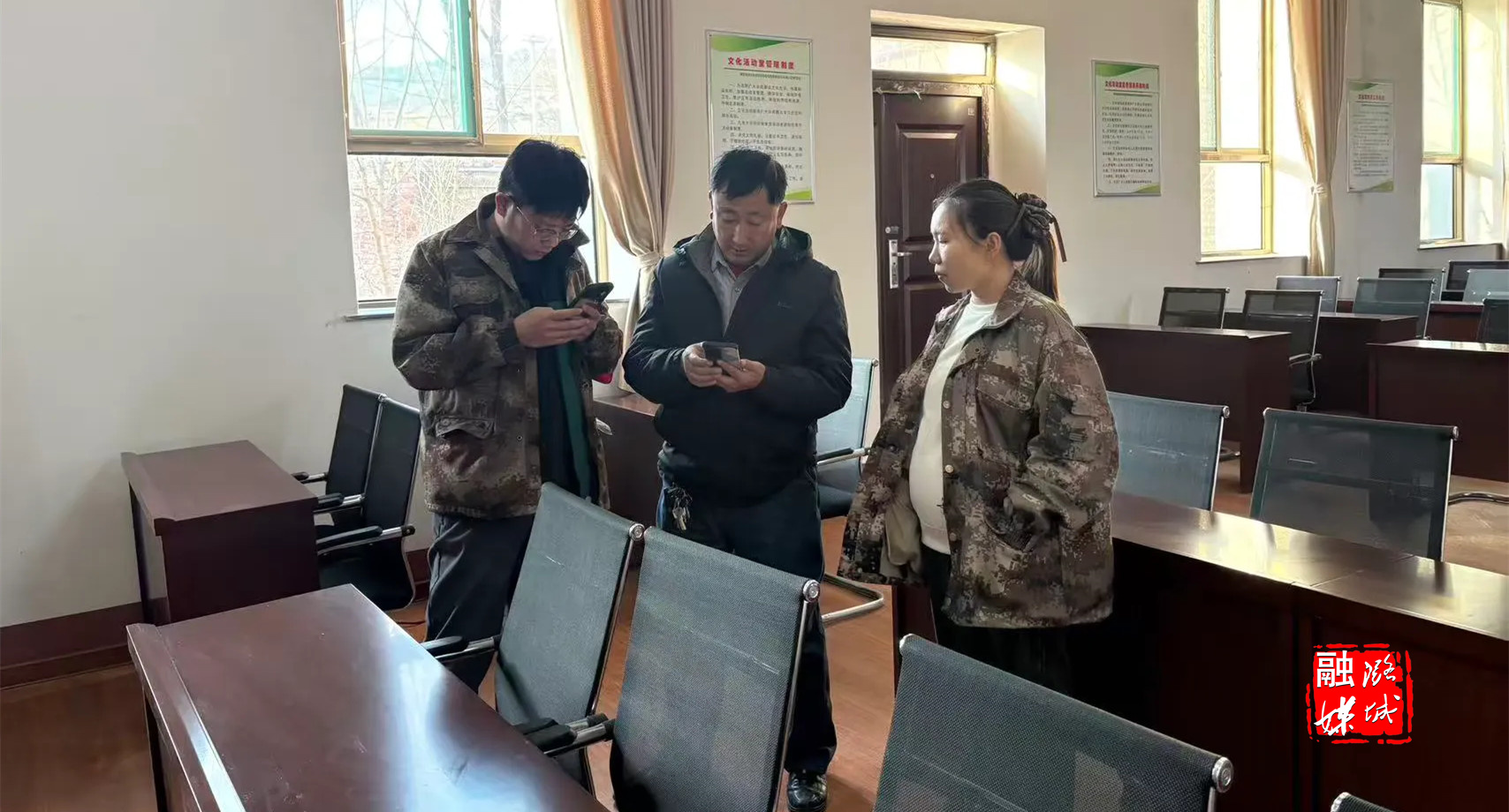 ▲辛安泉镇相关负责人到常村入户宣传医保征缴相关政策。