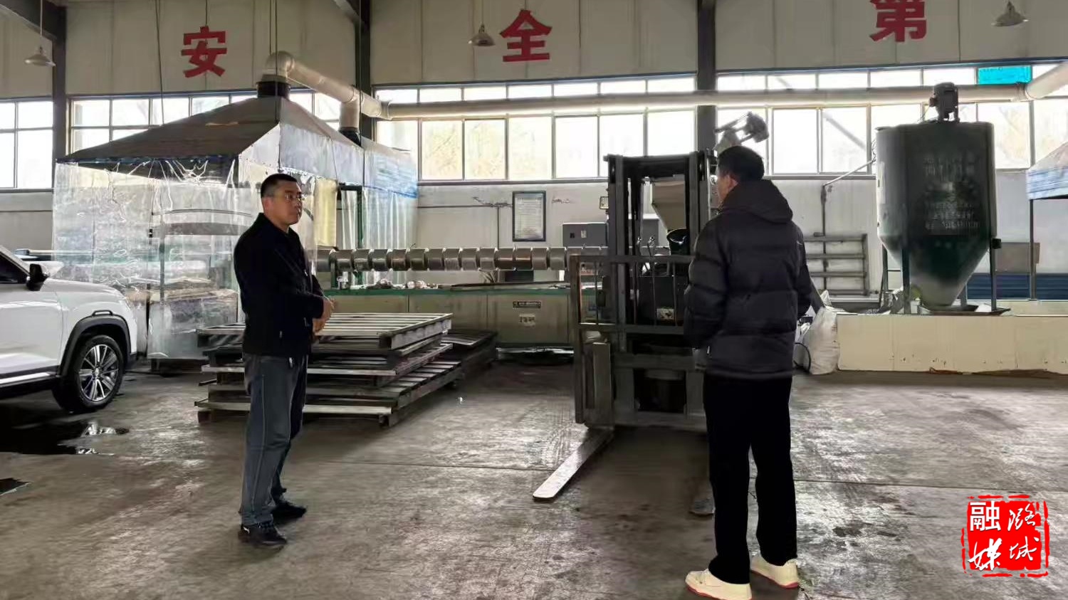 ★12月19日,成家川街道工作人员到大成化纤有限公司查看环保情况。
