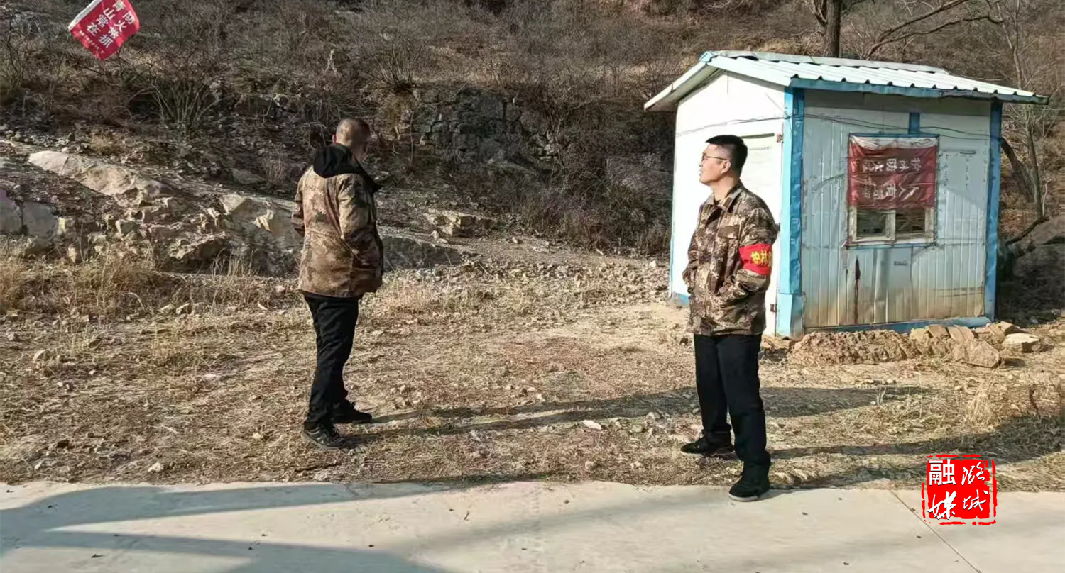 ▲成家川街道相关负责人巡查各村森林防火工作。