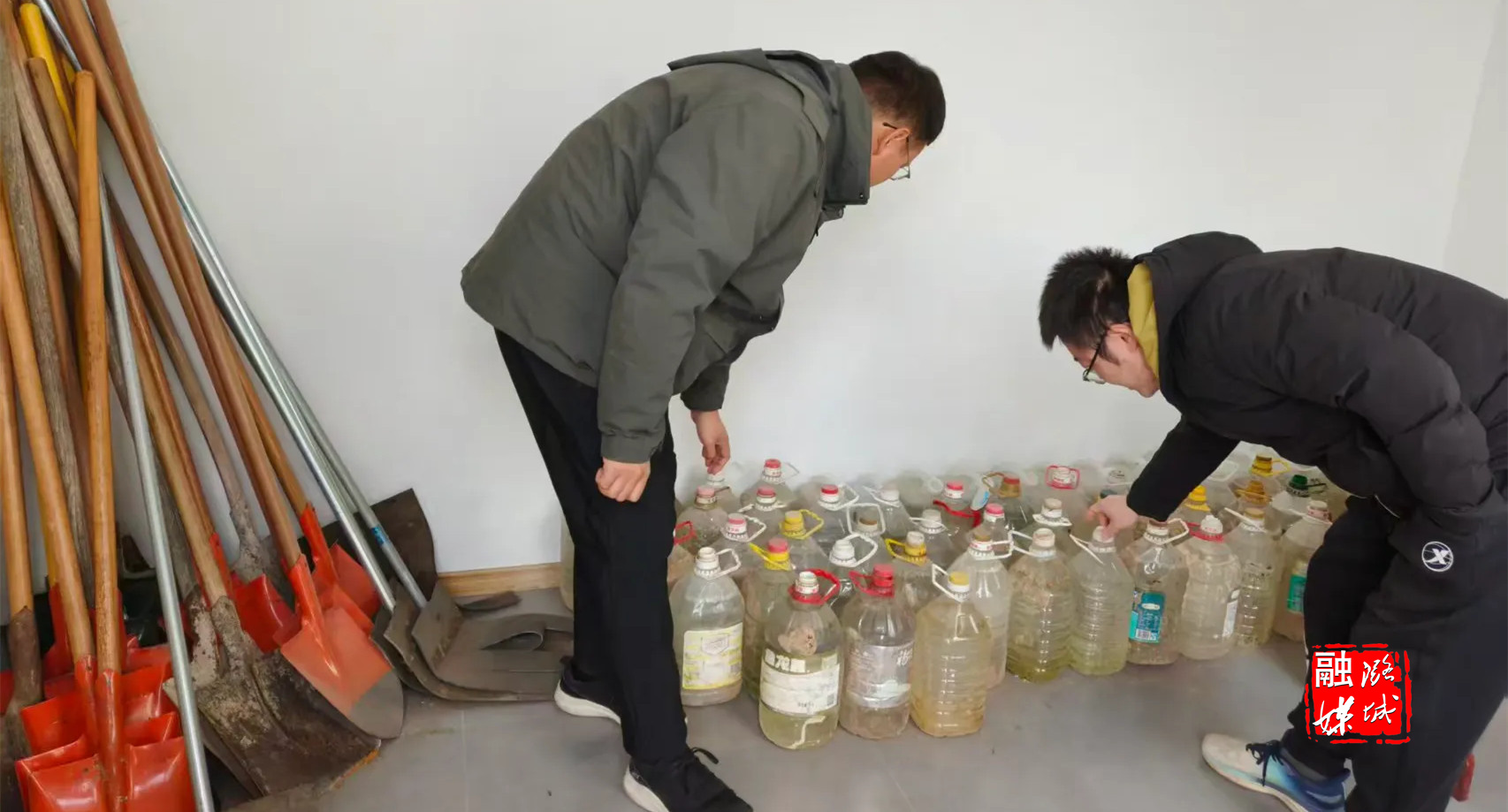 ▲辛安泉镇相关负责人到西流北村查看防火物资储备情况。
