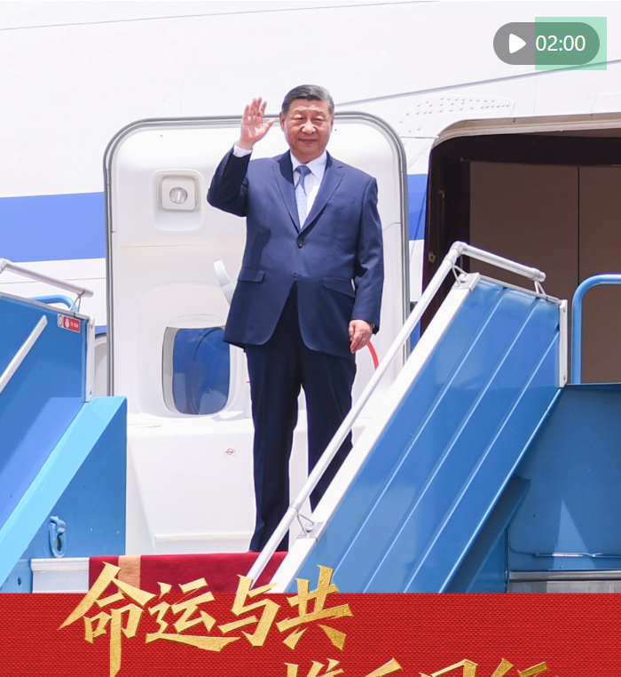 当地时间6月16日中午,国家主席习近平乘专机抵达阿斯塔纳,应哈萨克斯坦共和国总统托卡耶夫邀请,出席第二届中国-中亚峰会。这是习近平向欢迎人群挥手致意。新华社记者 殷博古 摄