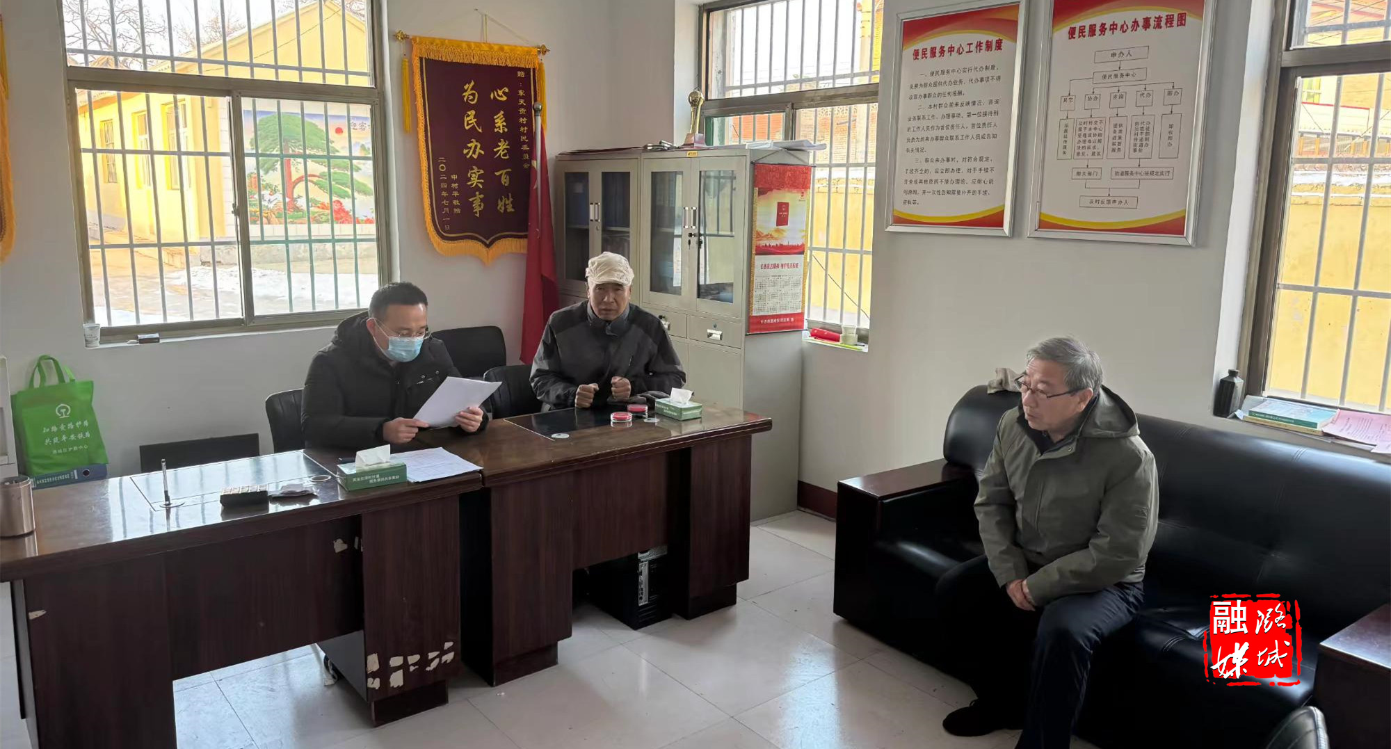 ▲史回镇相关负责人就基层党建、保暖保供、安全生产等工作进行督促指导。