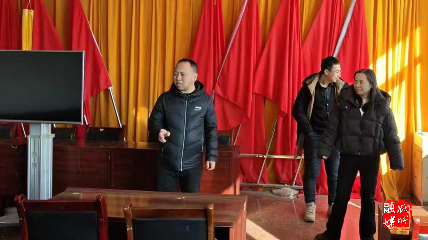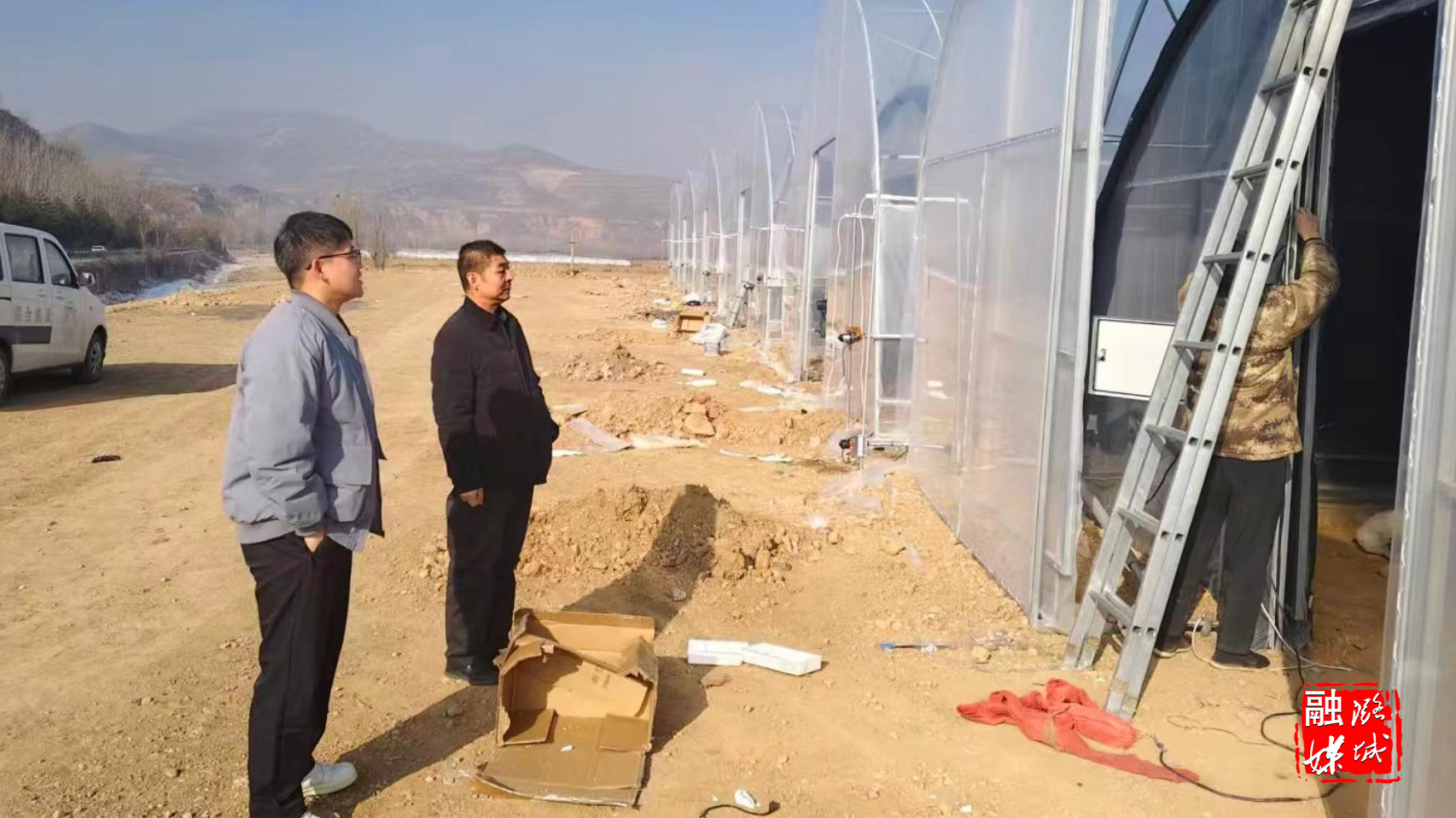 ▲翟店街道相关负责人与项目方协调推进项目建设工作。