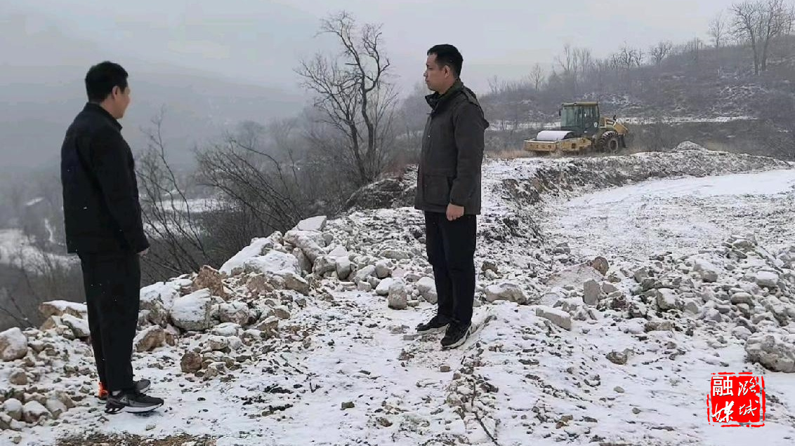 ▲辛安泉镇相关负责人到石梁村井峪小组查看店辛线项目建设情况。