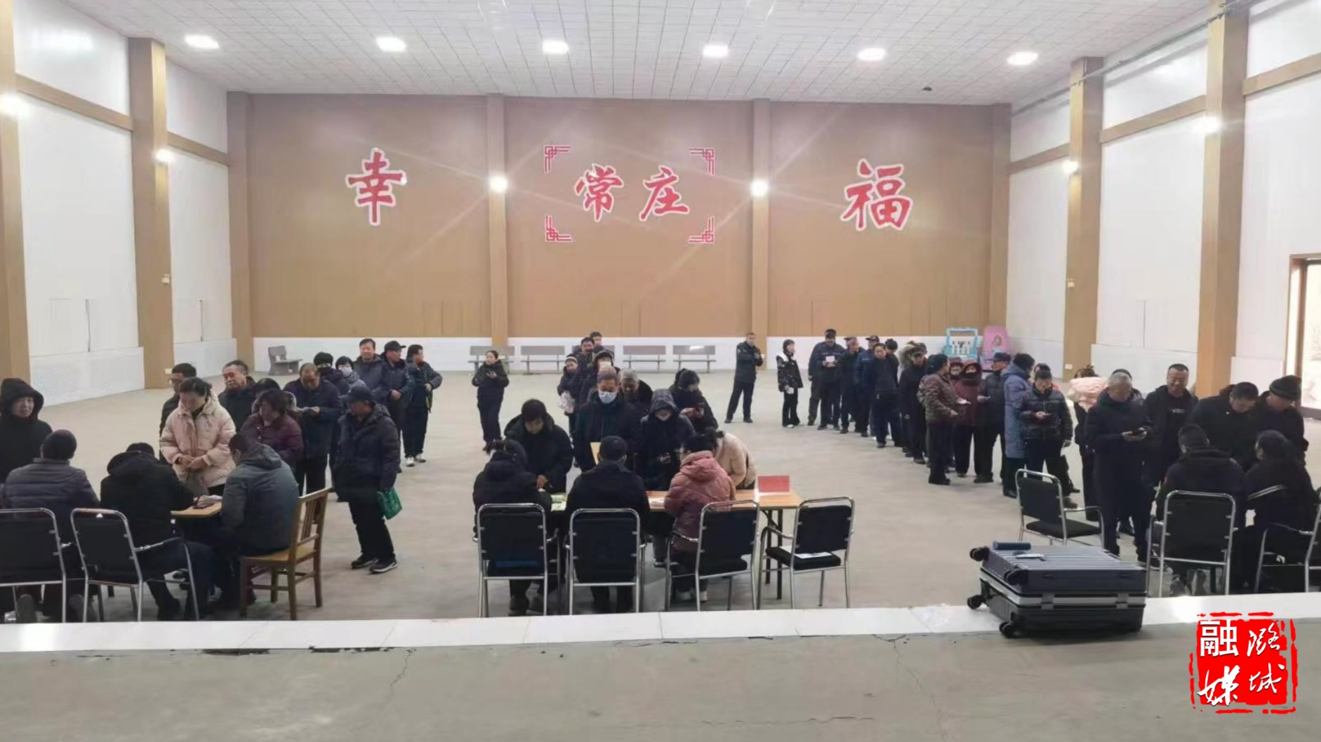▲店上镇常庄村股份经济合作社为股民发放福利。