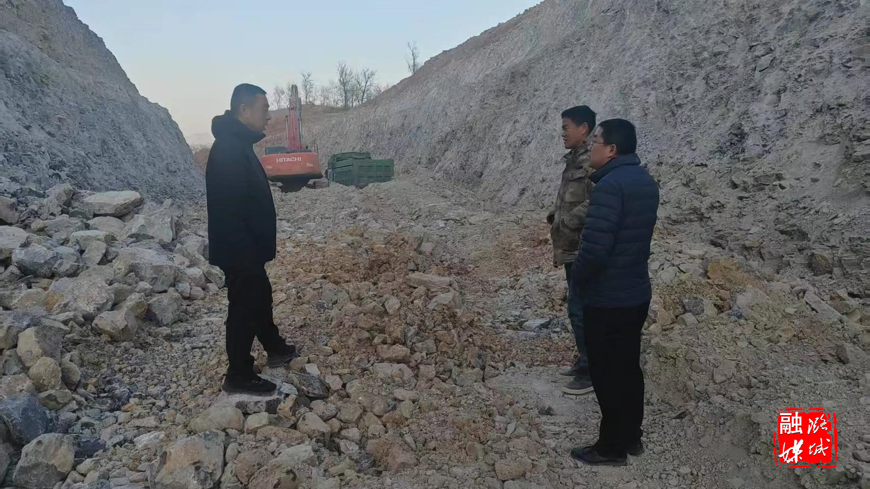 ▲区交通运输局负责人在店辛线督促冬季施工质量、安全、进度。