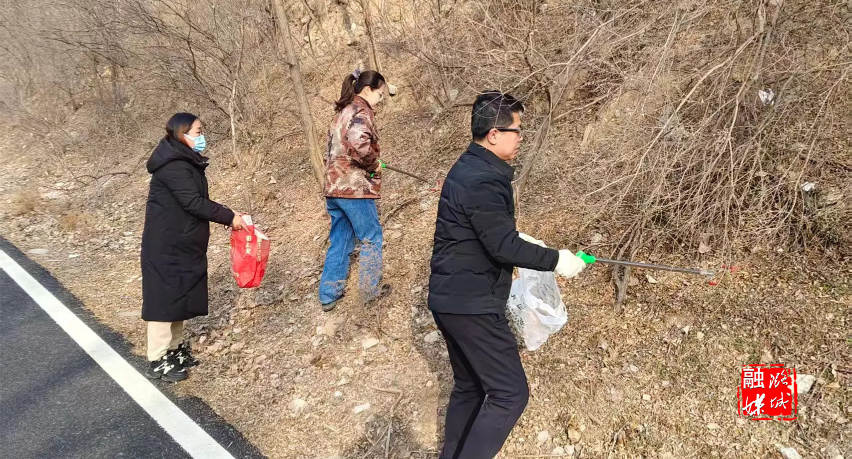 ▲黄牛蹄乡相关负责人实地检查双黄线沿线环境卫生,现场带头清理沿线漂浮垃圾。