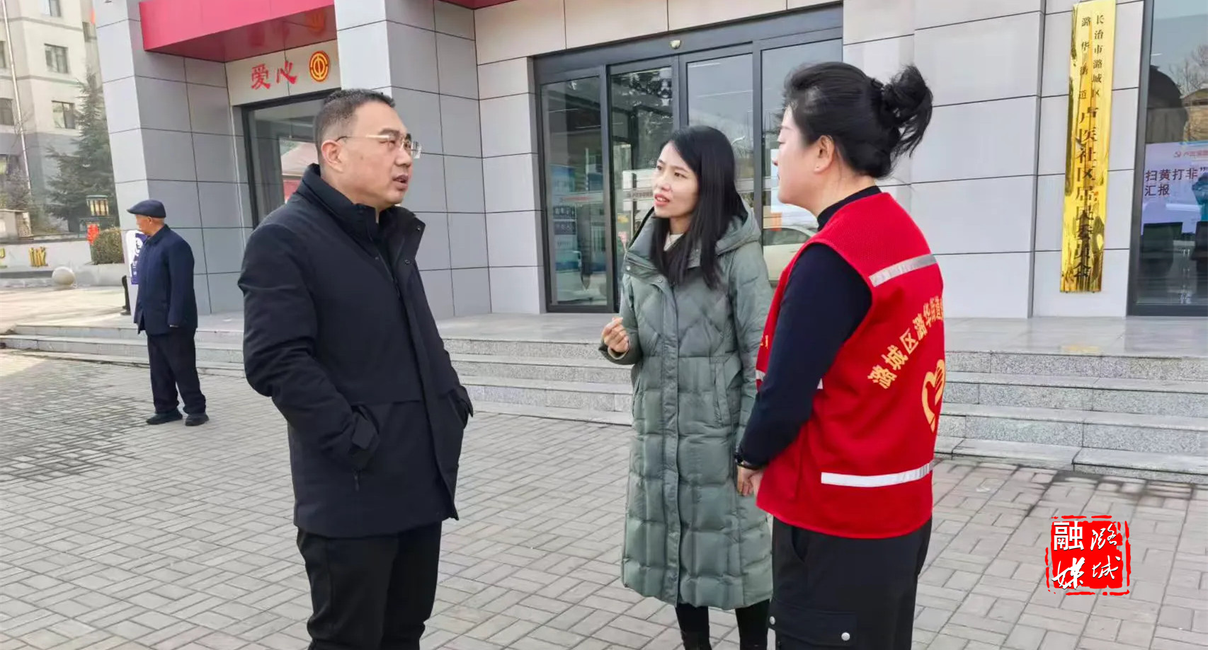 ▲潞华街道负责人到卢医社区查看环境卫生整治工作。