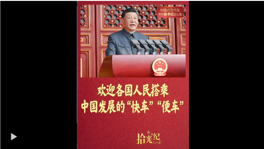 中国式现代化是走和平发展道路的现代化。2013年1月28日,十八届中共中央政治局就坚定不移走和平发展道路举行集体学习。面向未来,习近平主席欢迎“各国人民搭乘中国发展的‘快车’‘便车’”。