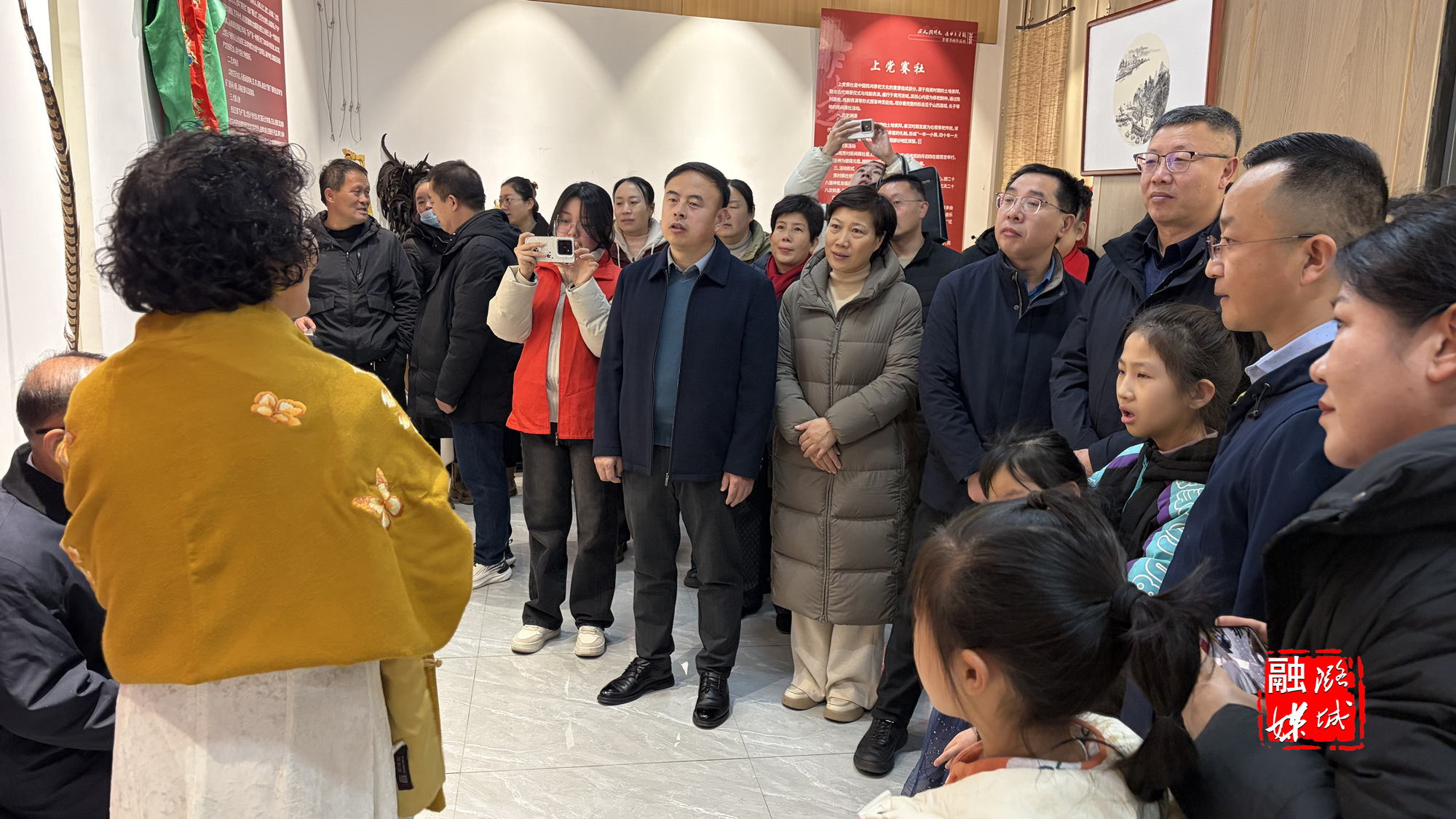 ★2月5日上午,我区“翰墨承非遗・文明润人心”非遗作品书画展正式开展。区委常委、宣传部部长王振华,市文化和旅游局副局长吴鸿宾,市文联副主席景慧丽及广大市民一同参观展览。