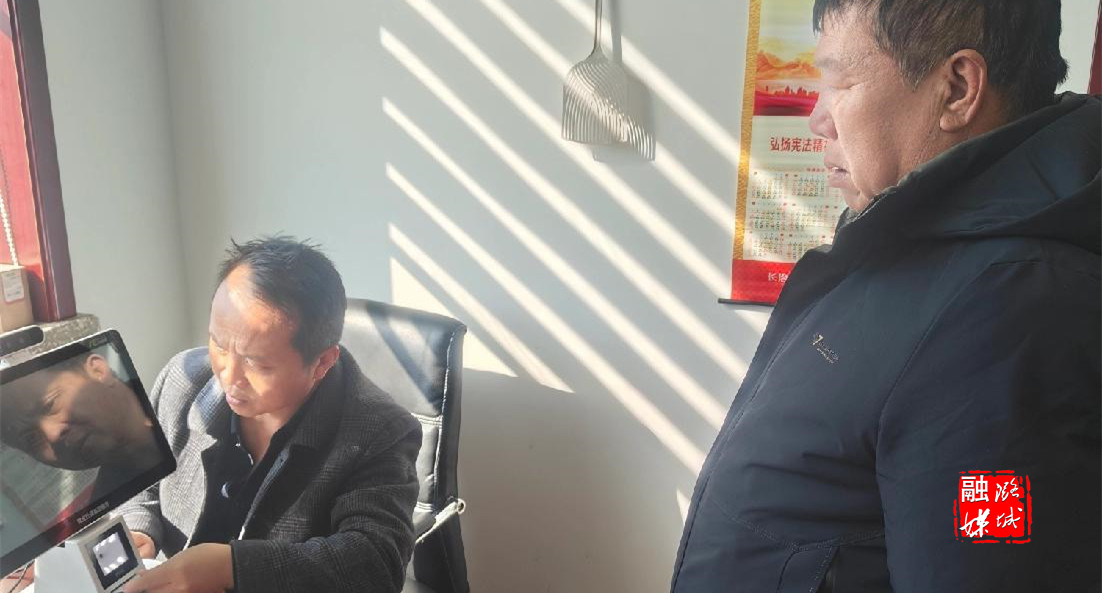 ★2月7日,店上镇石窟村工作人员为村民进行养老保险资格认证。