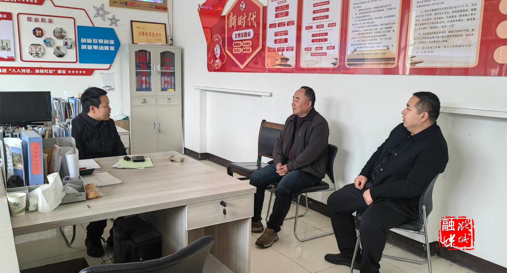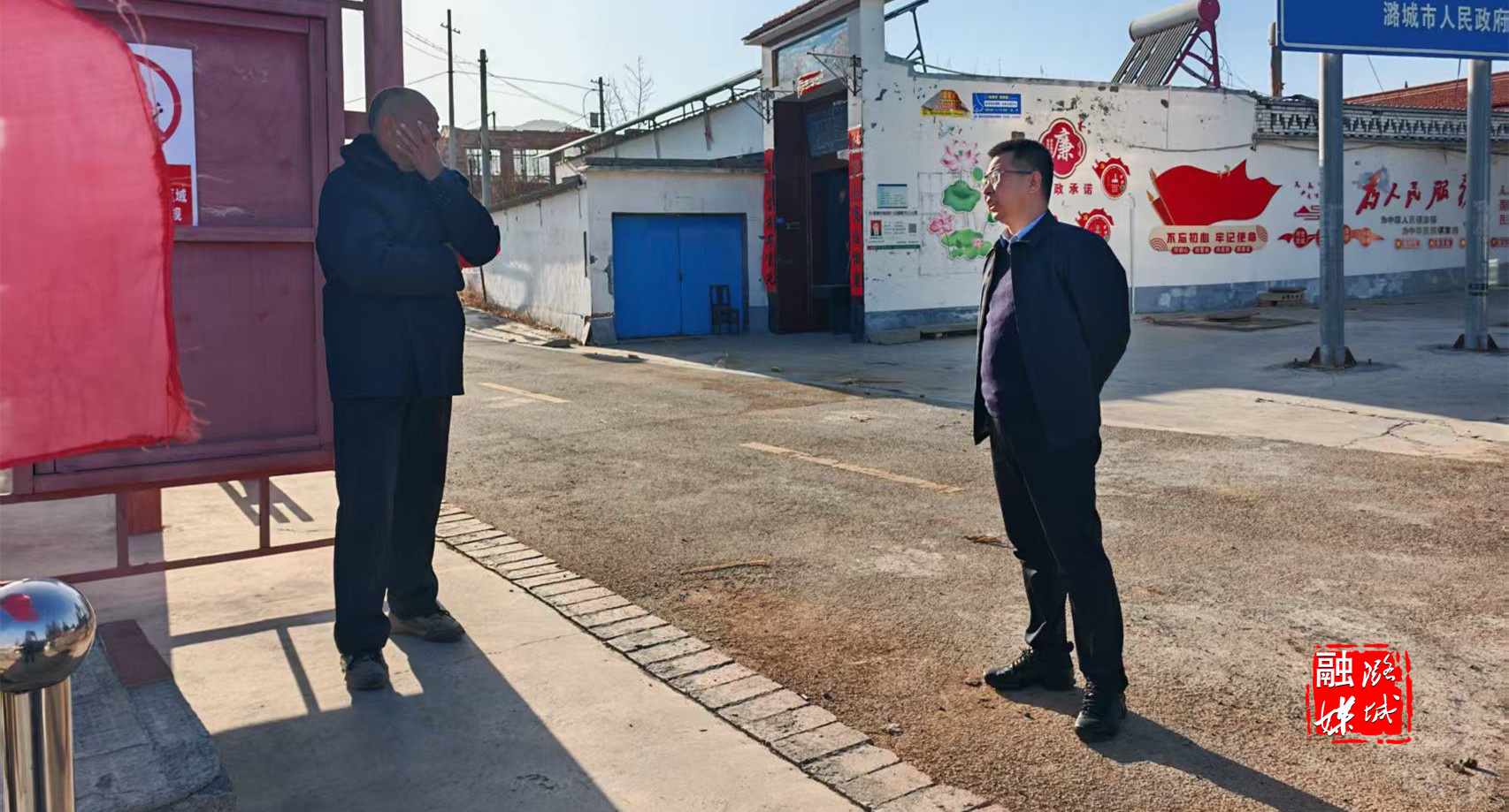 ▲史回镇相关负责人到朱家川村就基层党建、安全稳定、环境卫生整治等工作进行督促指导。