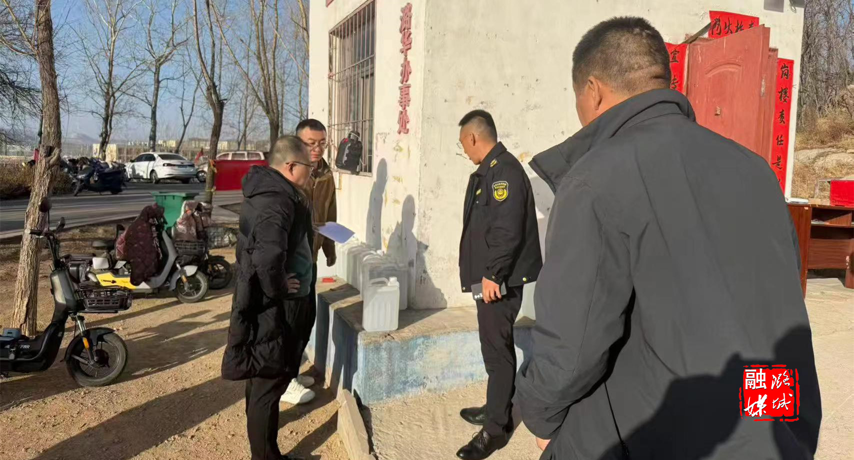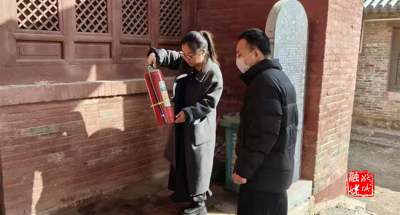 ▲翟店街道相关负责人到文物保护场所查看消防安全。