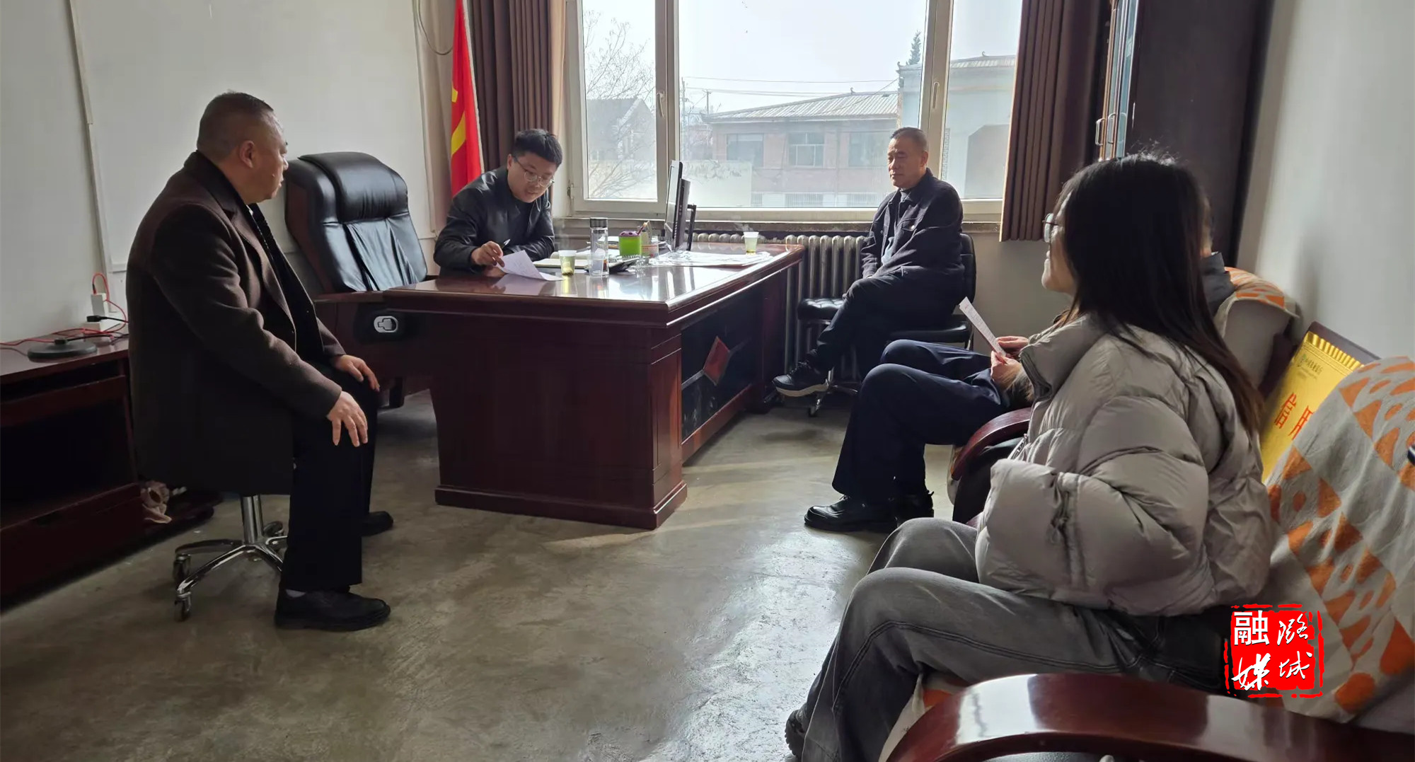 ▲辛安泉镇相关负责人到各村商讨推进乡村振兴项目相关工作。